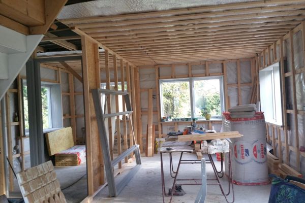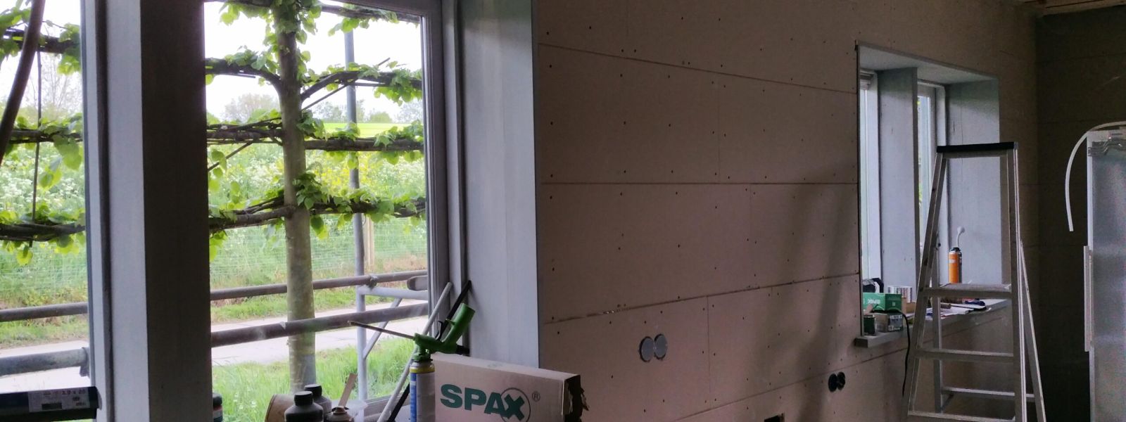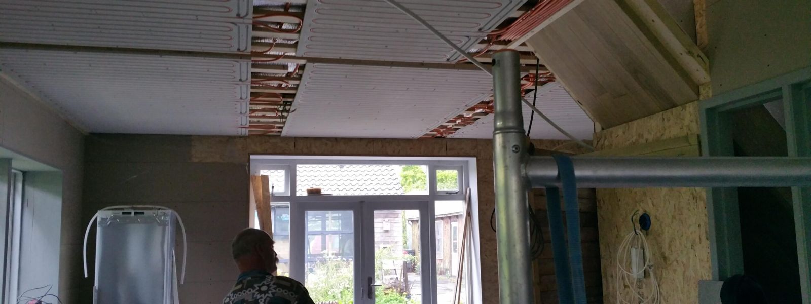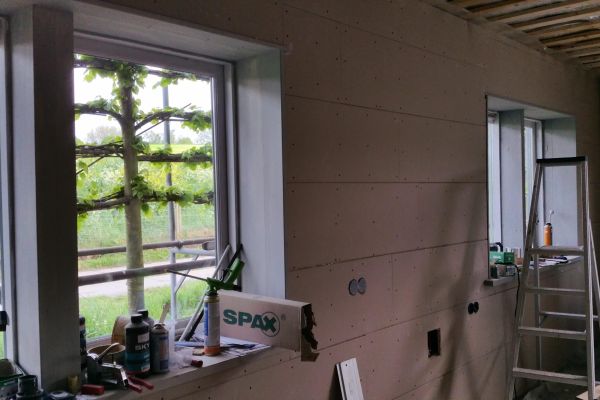 Voormalige tuinderswoning uit 1959, houtskeletbouw.De buitenkant is vernieuwd, red ceder. De binnenkant is voorzien van isolatie met diverse (deels gebruikte materialen): wanden 20 cm, pir van Kingspan, pir van Dupanel. Dak: 15 cm pir van Kingspan. Plafond b.g.: 8 cm minerale glaswol en Alkreflex folie zodat straling niet naar boven gaat. Vloer b.g. deels: 5 cm Wediboard.Betonvloer ligt direct op de aarde.HR++ glas op b.g., Velux dakramen dubbel glas.Leibomen op de zuidoost zijde als zonwering.Op het dak van het huis 8 st. pvt panelen en 16 st. pv panelen. De pv panelen die we vanaf 2012 hebben zijn verhuisd naar het fietsenhok. We hebben gekozen voor plafondverwarming omdat we dan nog 5 cm als vloerisolatie konden aanbrengen, niet overal past daar nog verwarming boven. Wandverwarming is wat lastiger, nu kunnen we onbezorgd een schilderij ophangen. Daarnaast biedt plafondverwarming de mogelijkheid om te koelen, misschien in de toekomst noodzakelijker dan verwarmen?Op de zolder hangen 2 infrarood panelen. We hebben een water/water warmtepomp in het werkhok staan met een warmwatervoorraad van 120 liter, daarnaast een vat van 40 liter voor de verwarming.Het dakraam op de zuidoost zijde is verwijderd zodat er minder warmte binnenkomt en we het hele dak konden vullen met panelen. Op de zuidwest zijde hangt een groot, oprolbaar zeildoek.Update november 2022: De regenbak van 1000 liter aangesloten. We wonen nu 3 jaar in het verbouwde huis, erg comfortabel. Geen storingen meer in verwarmingssysteem. Sinds 1,5 jaar een elektrische bus.