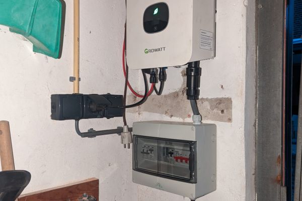 Stroom alleen. 3200 Wp Zonnepanelen op Zuid-west, platdak opstelling. Enkel fasige teruglevering. 3 fase aansluiting, Centrale Verwarming en Stromend Warm Water via Warmtepomp, R290. WOLF CHA 7 kW.