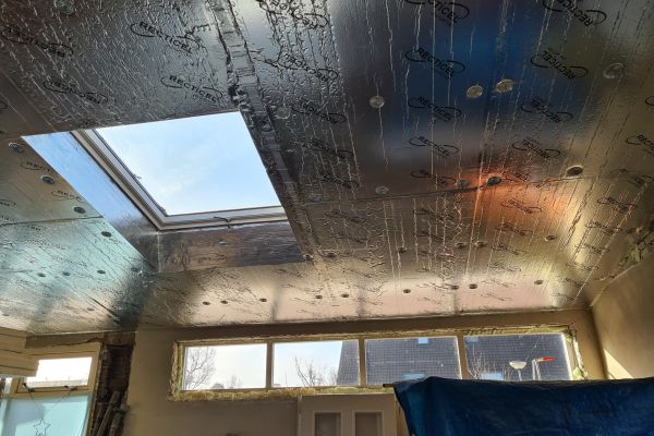 Binnenzijde dak wordt bekleed met PIR isolatieplaten 180 mm dik.