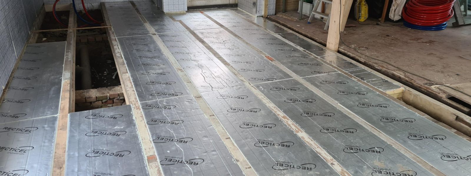 Tussen de vloerbalken worden PIR isolatieplaten geplaatst van 140 mm dik.