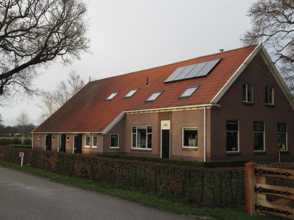 Sinds 2007 wonen wij in deze door ons zelf verbouwde boerderij. Tijdens de verbouwing is het achterhuis geisoleerd d.m.v. voorzetwanden met isolatie en is het dak voorzien van dakisolatie. De bestaande spouwmuur van het voorhuis hebben we laten isoleren d.m.v. isopur. De woning heeft voor het grootste deel vloerverwarming. Vijf jaar geleden zijn er zonnepanelen geplaatst, die 5000 kwh opleveren per jaar. Vanaf voorjaar 2017 is de woning gasloos en wordt verwarmd d.m.v. een pelletketel. Een jaar later zijn er vier zonnecollectoren aangeschaft, die meehelpen bij de verwarming van het huis en de warmwatervoorziening.