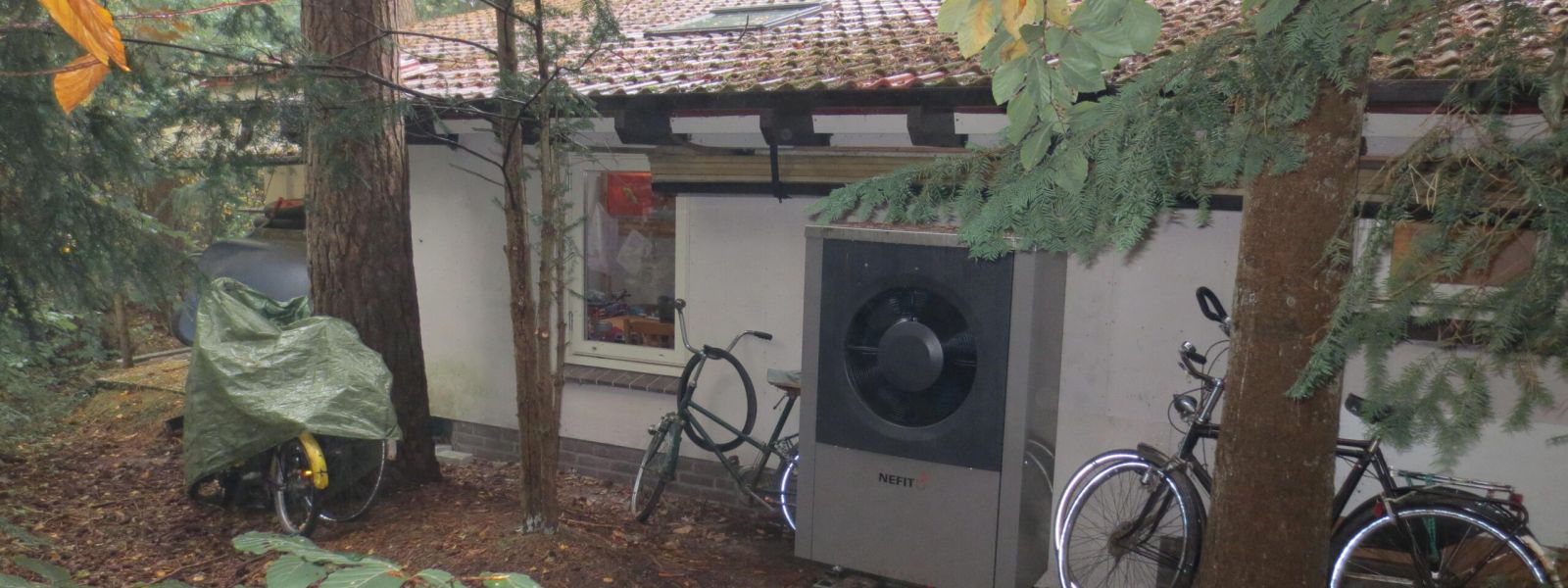 Bungalow uit 1962, geisoleerd, douchewaterwarmteterugwinning en warmtepomp van Nefit Enviline 7 kW met monobloc-buitenunit.