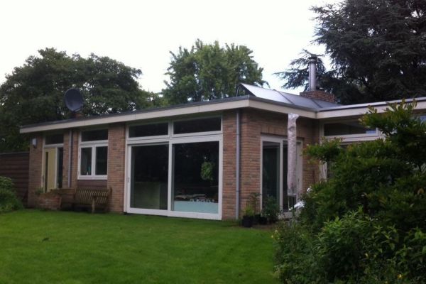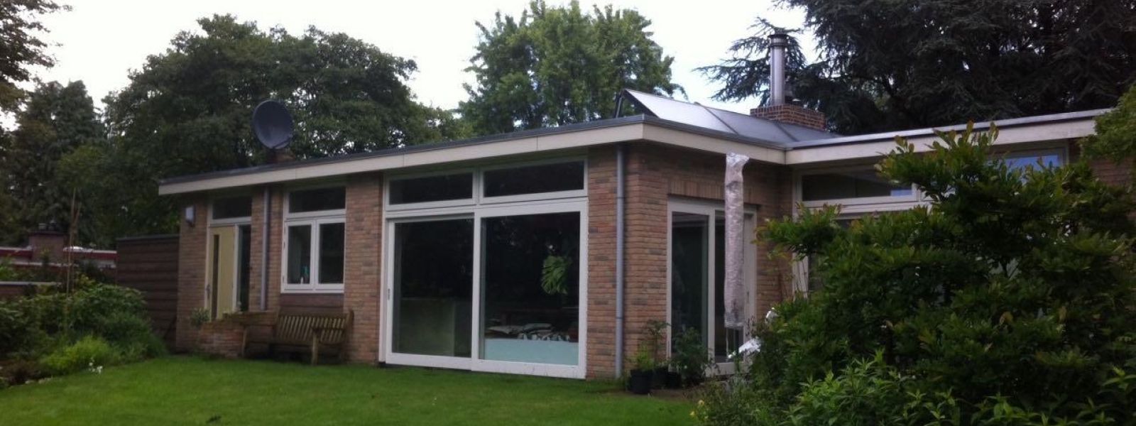 Bungalow uit 1962 met oorspronkelijk energielabel F is uitgebouwd en verduurzaamd tot energielabel A. Maatregelen die zijn genomen: plaatsen van zonnepanelen en zonnecollectoren, dakisolatie met Homatherm isofloc, vloerisolatie met Homatherm houtwol, muurisolatie met Homatherm, plaatsen van een grote leemkachel, muur- en vloerverwarming, aanbrengen van leem op alle binnenwanden, dubbel HR++ glas, renovatie uitgevoerd met alleen duurzame materialen.