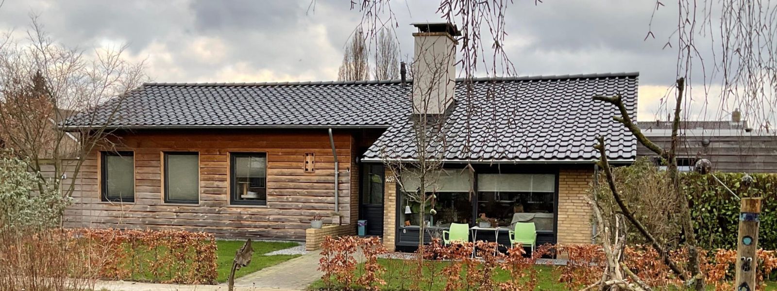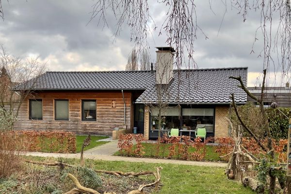 Een compleet verbouwde bungalow uit 1963 met 2 uitbreidingen zijkant/achterkant.