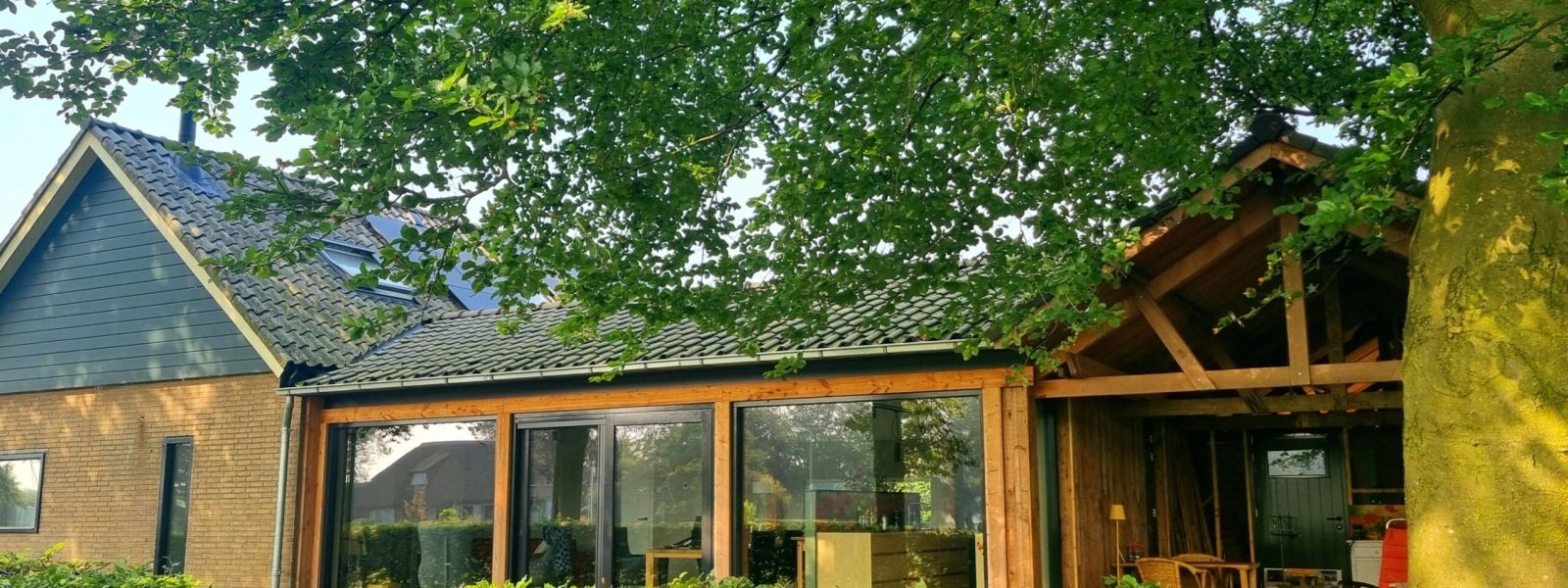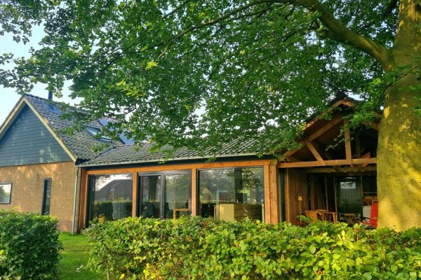 Vrijstaande semi bungalow uit de jaren 60. Onlangs geheel verduurzaamd met tussenbouw (woon/leefgedeelte) tussen oorspronkelijke huis en oude timmerschuur die is omgebouwd tot overdekt terras. Energielabel A+++, gasloos, nul op de meter.