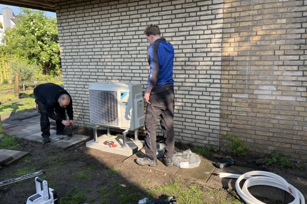 Lucht/water warmtepomp met vloerverwarming/-koeling gestuurd op ruimte-niveau.