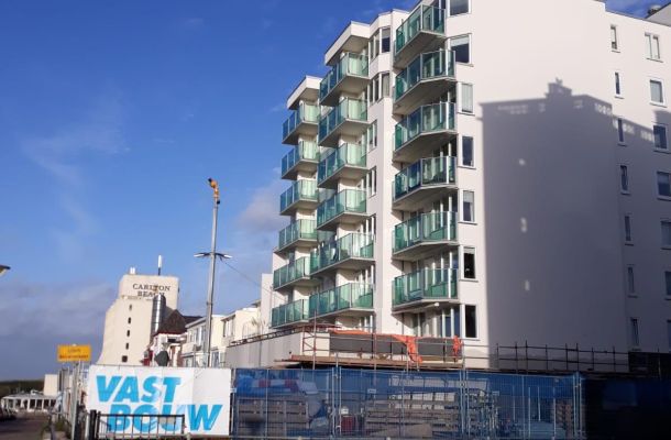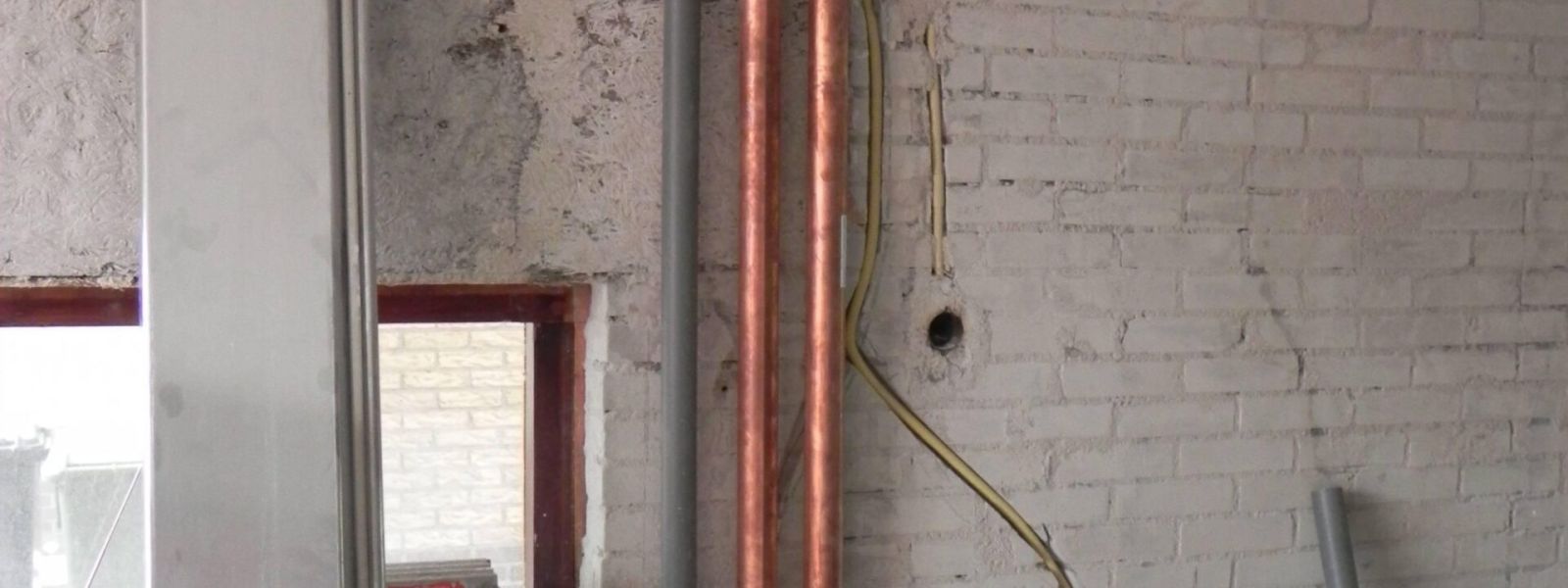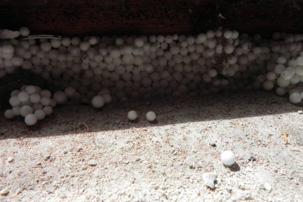 Materiaal: EPS korrels Smalle spouw van 6 cm. opgevuld met EPS korrels. Daarna buitenmuren gevoegd en geïnpregneerd.