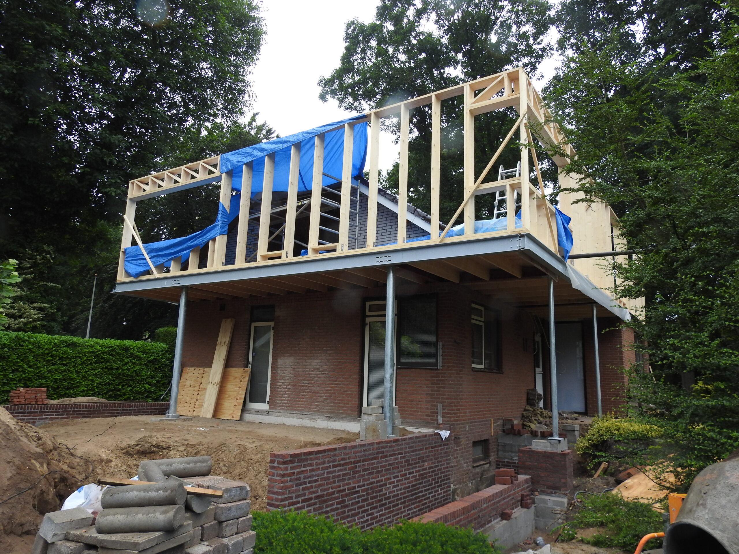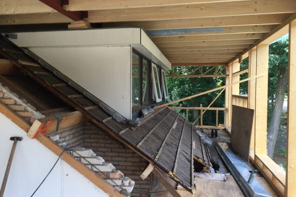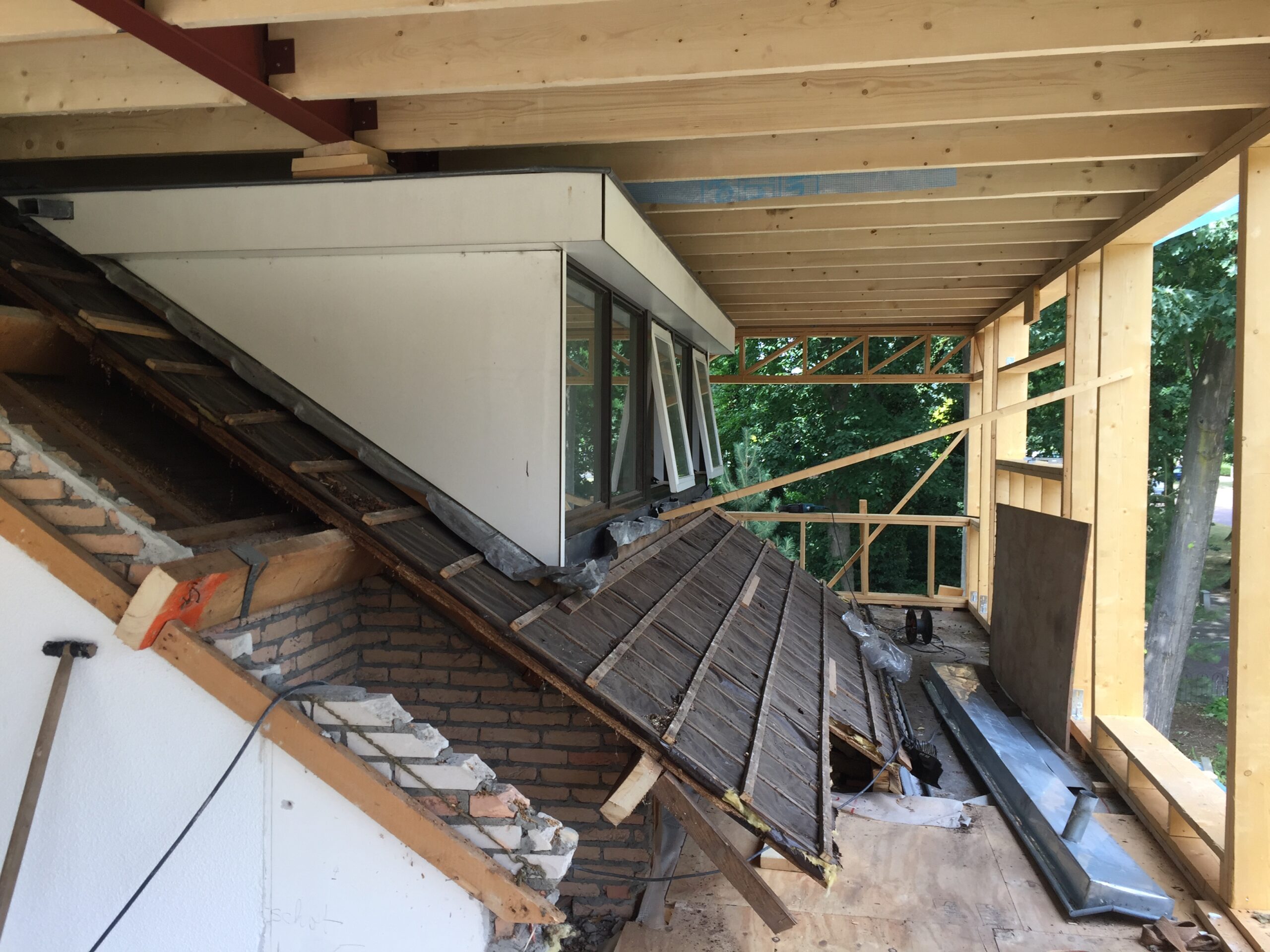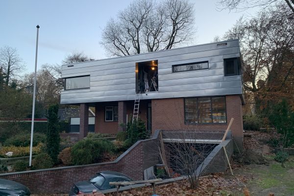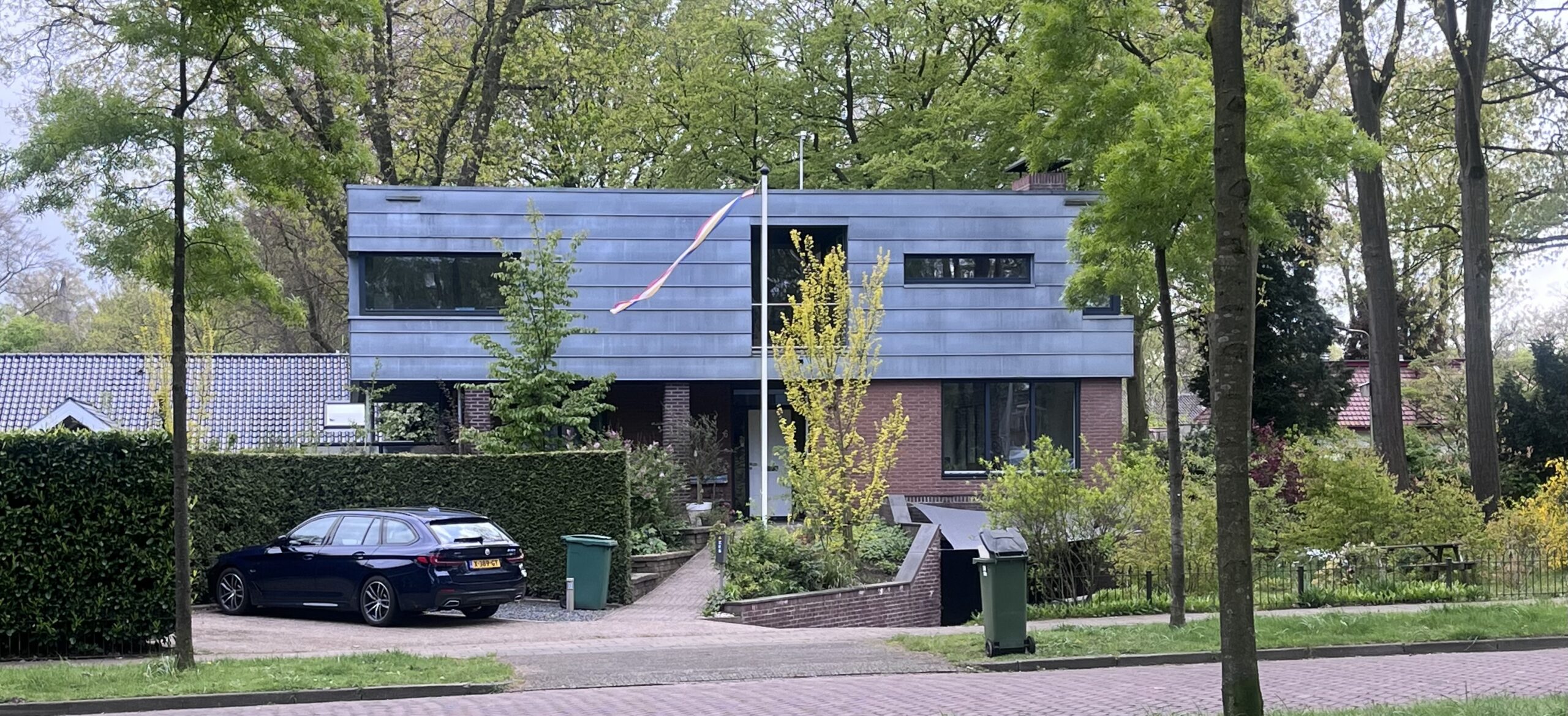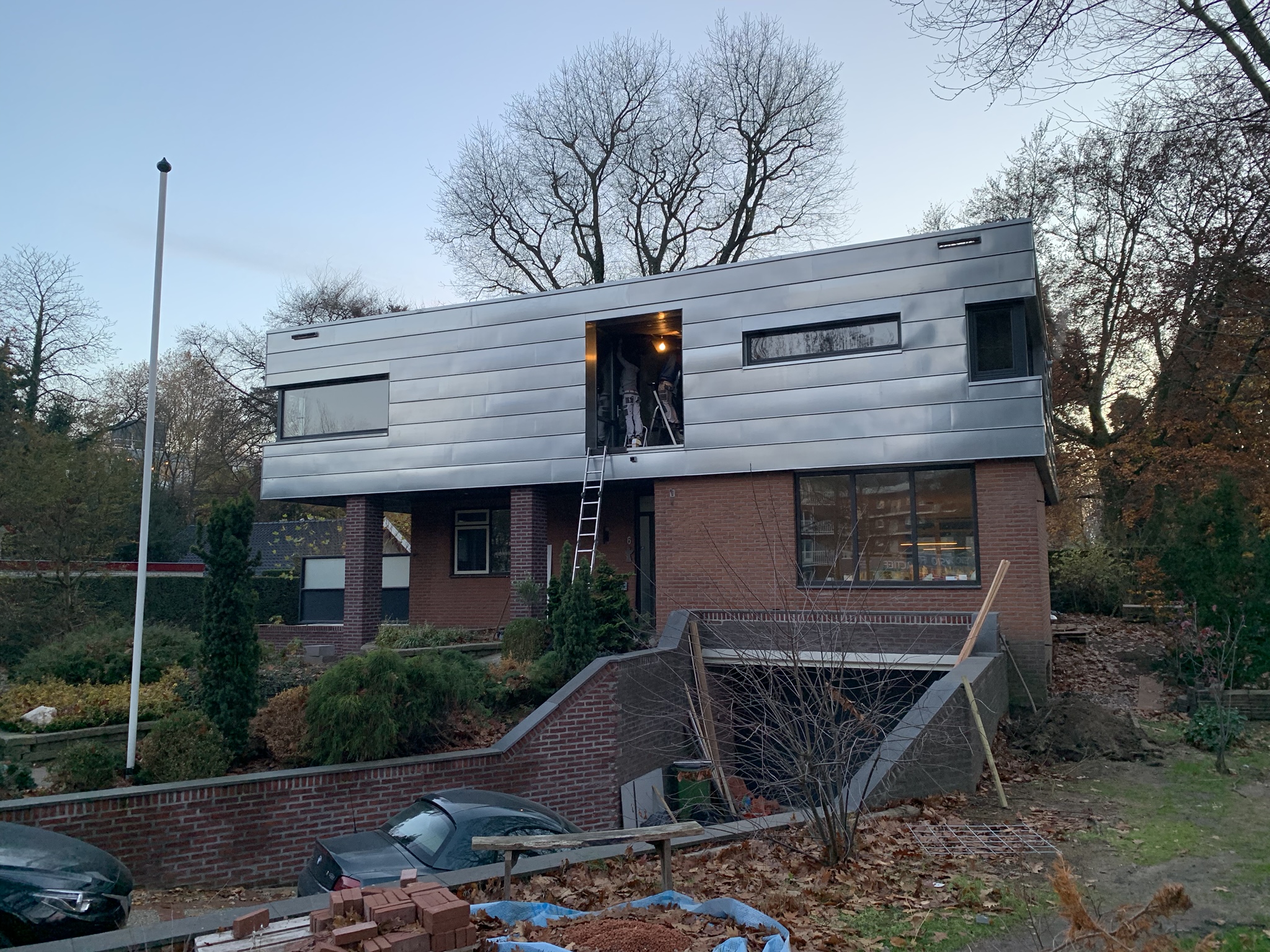 Jaren 70 bungalow in twee stappen verbouwd tot duurzaam huis. Als eerste in 2018 de slecht gebouwde en geïsoleerde schuine kap met dakpannen vervangen door er een duurzame houtskeletdoos overheen te bouwen.