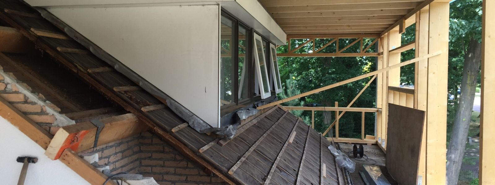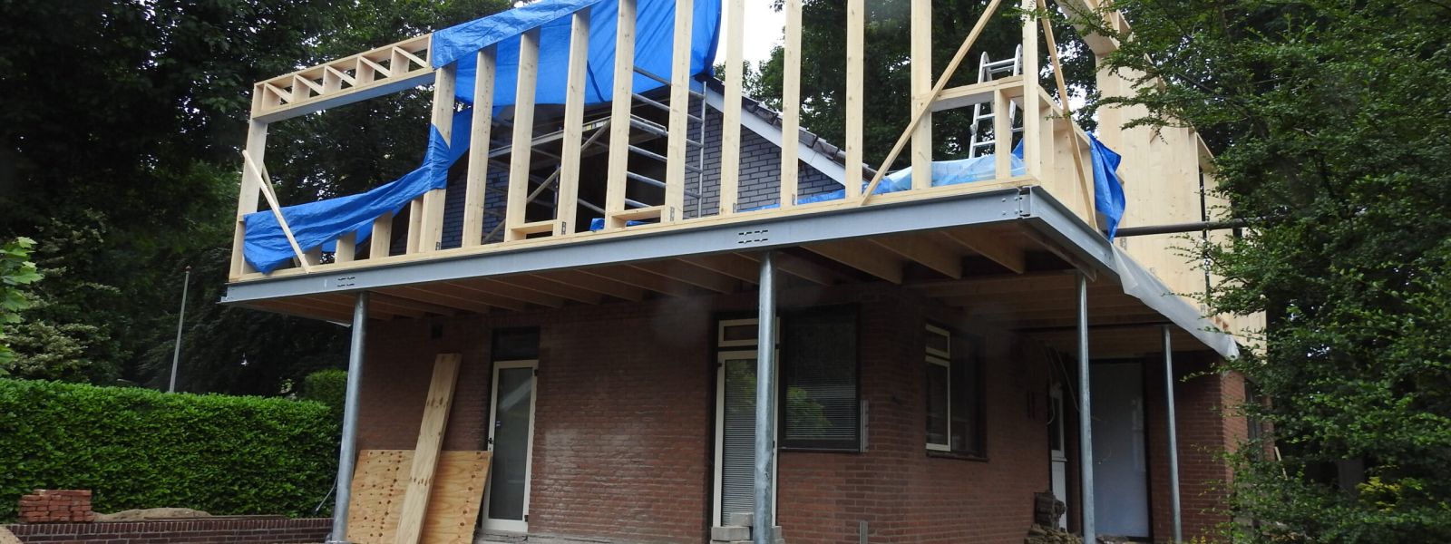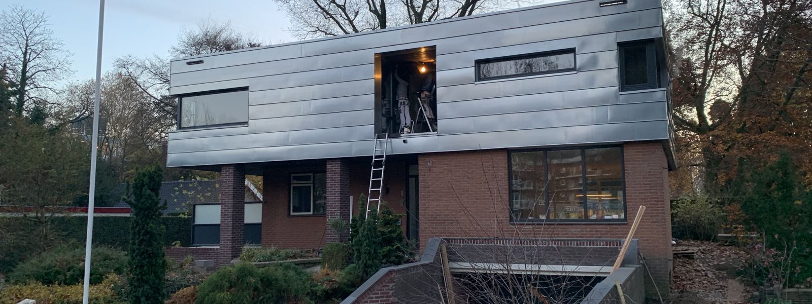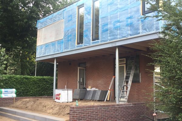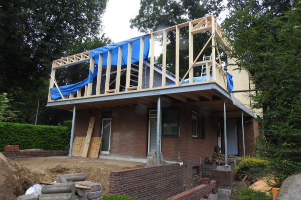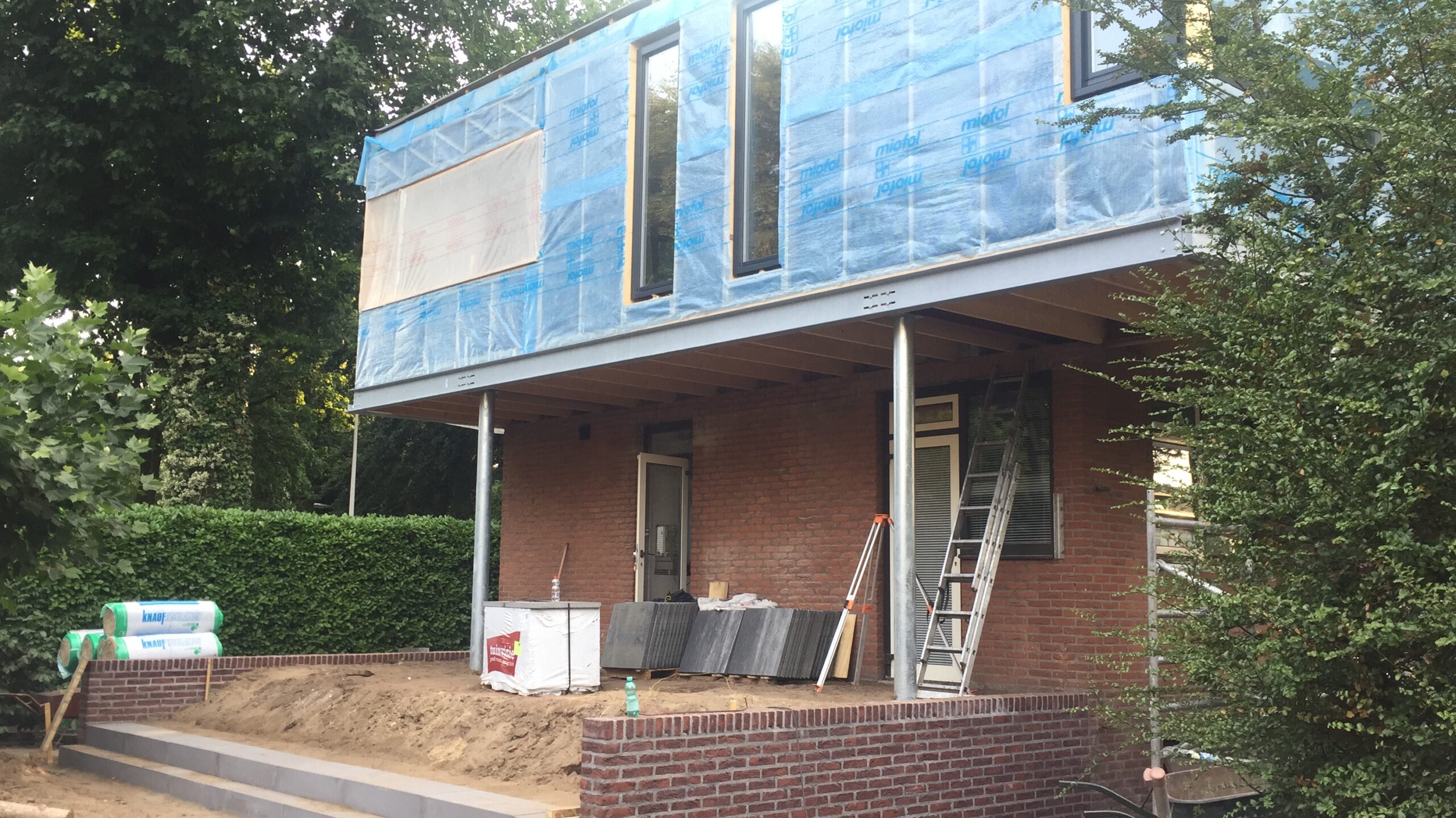 Jaren 70 bungalow in twee stappen verbouwd tot duurzaam huis. Als eerste in 2018 de slecht gebouwde en geïsoleerde schuine kap met dakpannen vervangen door er een duurzame houtskeletdoos overheen te bouwen.