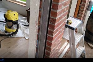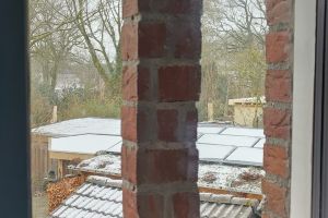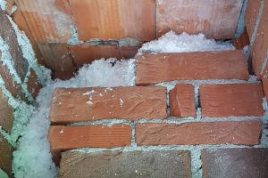 De spouwmuur isolatie is ingeblazen. Helaas kwam ik er jaren later achter dat ze toch stukje zijn vergeten. Goed checken dus! En er waait veel uit de spouw via de dakrand. Liever eerst je dak isoleren en rand aansluiten verbeteren en dan spouwmuurisolatie. Op de andere foto de loze ruimte boven de voordeur. Je ziet de witte glaswol spouwmuurisolatie. Links boven de deur was geen spouw. De gehele ruimte heb ik opgevuld met rest stukjes isolatie (glaswol en folie) die ik over had.