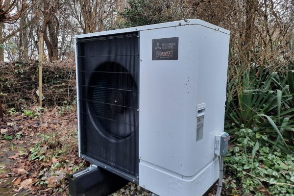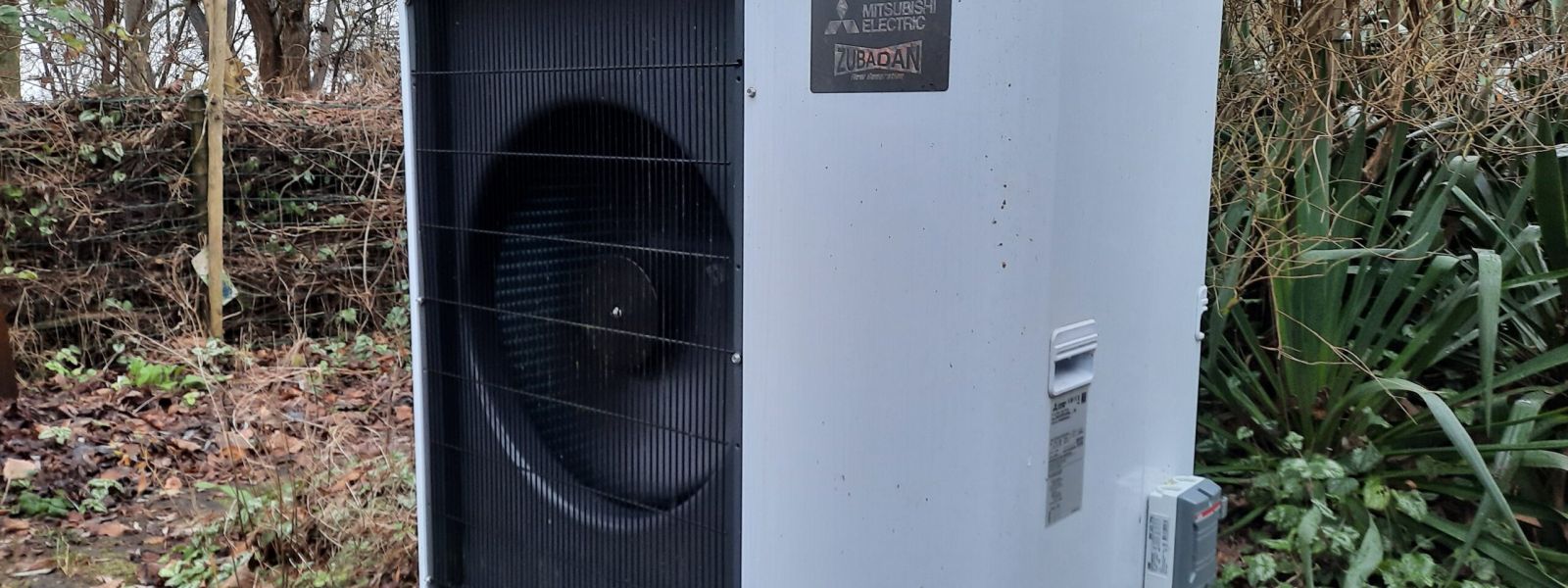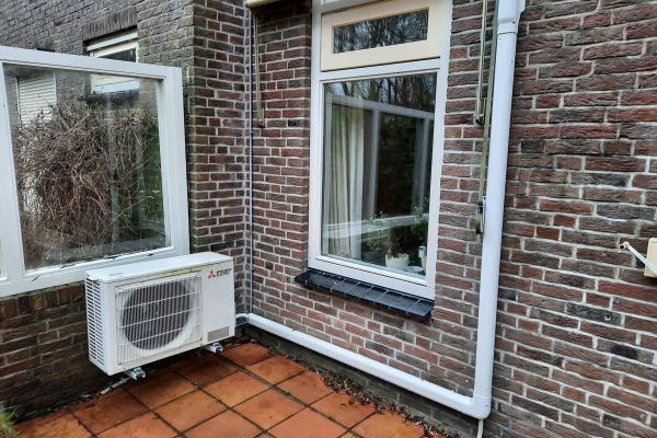 Lucht/water-warmtepomp: De buitenunit van de lucht/water warmtepomp (Mitsubishi Zubadan 112 ) haalt de warmte uit de lucht, ook tijdens de nacht of op een koude winterdag. Deze warmte wordt in huis via een warmtewisselaar afgegeven aan CV-water voor de bestaande vloerverwarming uit 1976.