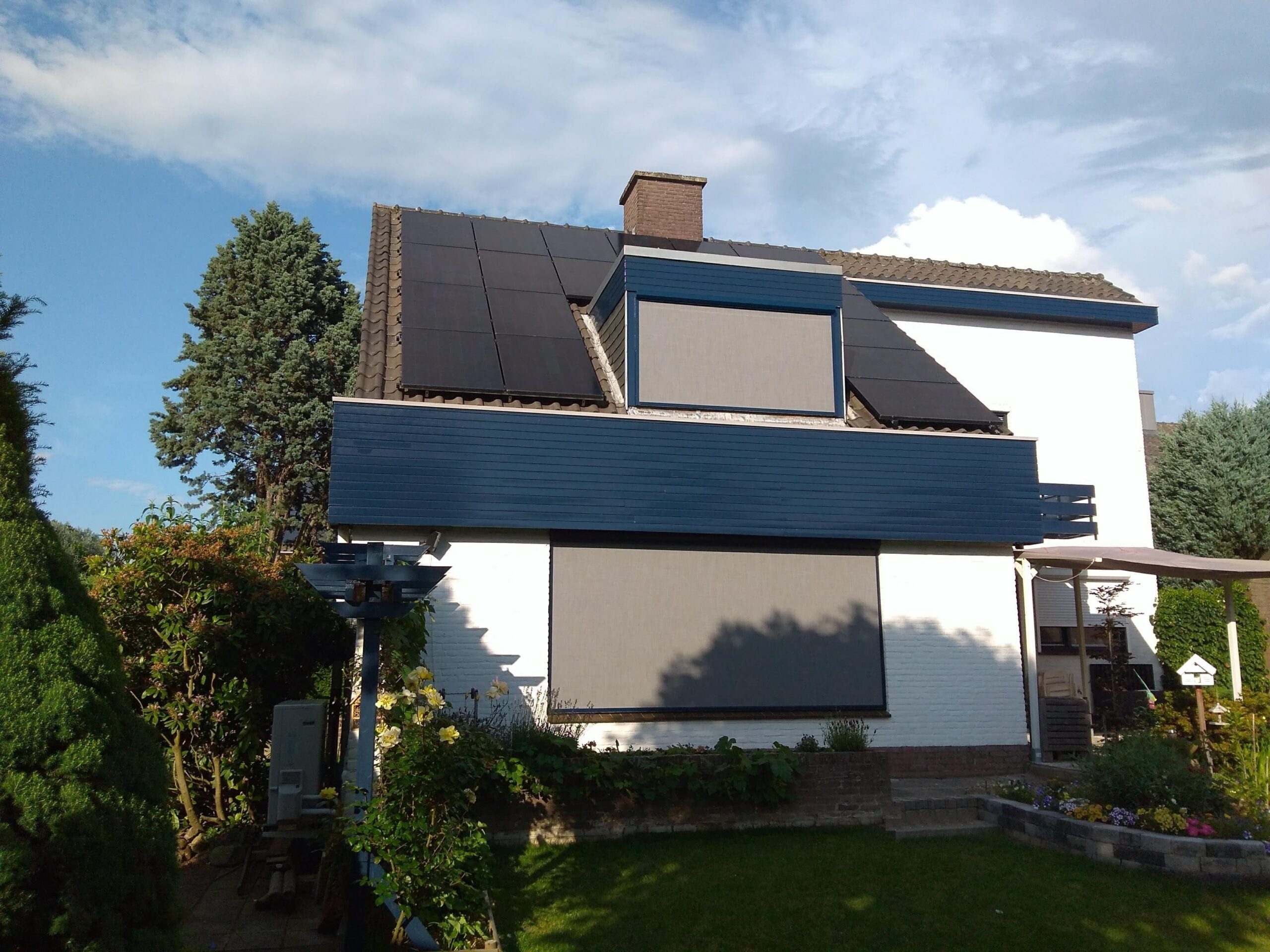 Alleen zonwering is bij ons niet voldoende voor een goed binnenklimaat. Koelen met de lucht/water-warmtepomp werkt niet omdat niet overal vloerverwarming ligt en door de toename van de luchtvochtigheid mogelijk condensatie kan ontstaan op ongewenste plekken.