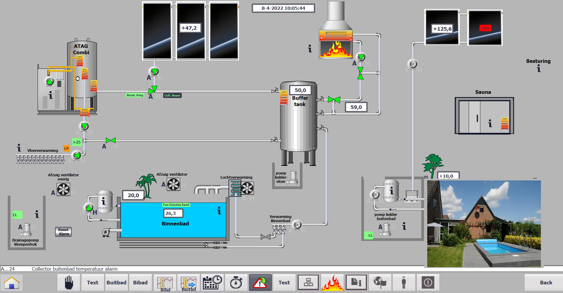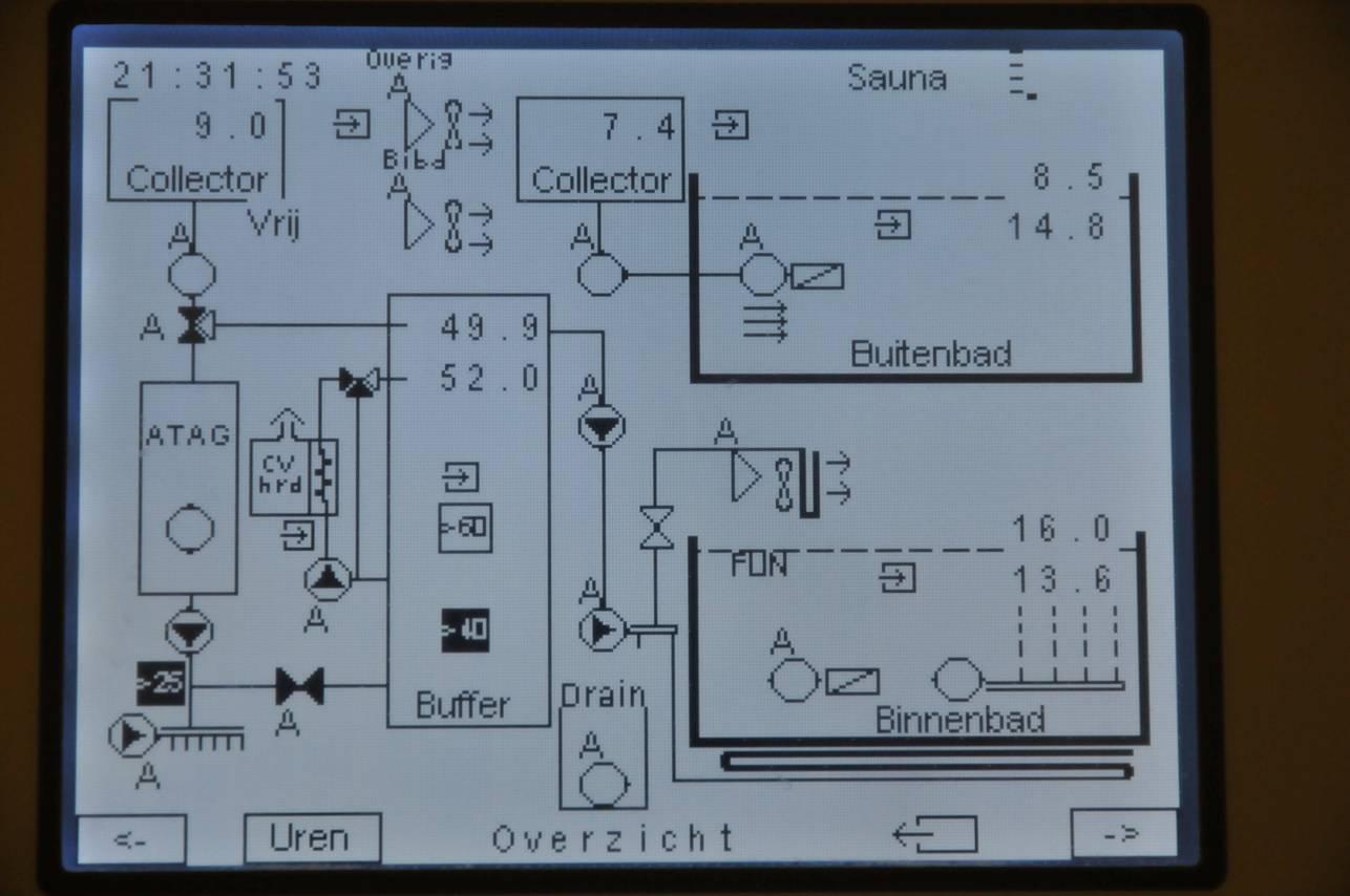 Natuurlijke vijver aangesloten op regenwater van het dak Toelichting inrichting Zwengelpomp met buffer 1,5 m2 aangesloten op regenwater van het dak. Deel van de tuin ecologisch ingericht en onderhouden. Klein fruit voor eigen jam voorziening het hele jaar. Het zoute (magnesium) water in het buiten- en binnenbad geeft een aanzienlijke besparing op het verbruik leidingwater en onderhoud.