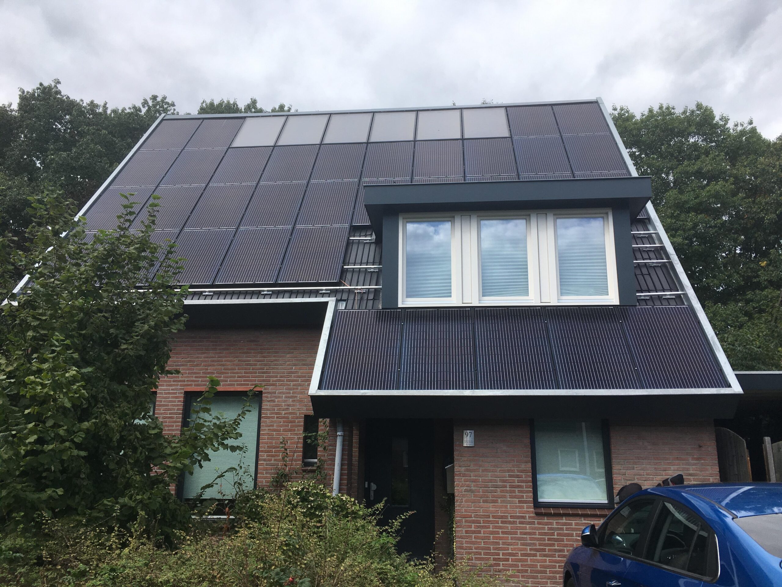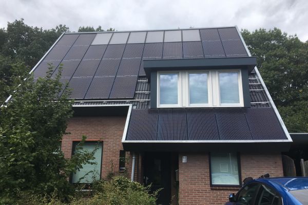 Om dit te bereiken is het dak vervangen voor een dak met dikke isolatieplaten, een RC van 7,0. De huidige vloer is vervangen en plaatsgemaakt voor een geïsoleerde vloer met een RC van 5,0. De begane grond heeft 700m vloerverwarming en de ramen zijn voorzien van triple glas. De voorzijde van het huis is volledig voorzien van zonnepanelen en zonnecollectoren, zuidgericht. 34 zonnepanelen en 6 zonnecollectoren wekken de energie voor ons huis ruimschoots op. Als back-up systeem hebben we gekozen voor een warmtepomp aanvullend op het forse (800liter) buffervat van de zonnecollectoren.