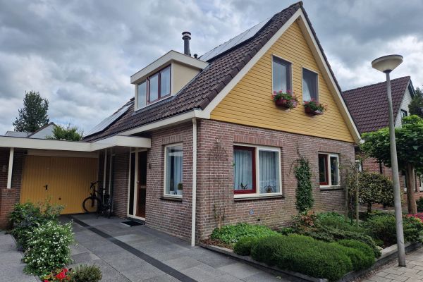 De woning bestaat uit een stenen onderbouw met daarop een bovenbouw / kap van houtskeletbouw. Alle draai-kiepramen in de woning zijn voorzien van driedubbele beglazing, de schuifpui heeft HR+++ glas met warmtewerende folie. Al het glas op de benedenverdieping en de garage zijn voorzien van H++ glas en een warmtewerende folie. De dakplaten zijn voorzien van een 15 cm. dikke laag polystyreen. De isolatie van de houtskelet gevel bestaat uit 10 cm. dik steenwol met een dampdichte folie aan de binnenkant en een dampremmende laag aan de buitenzijde. De spouwmuren zijn voorzien van 5 cm. dikke polystyreen platen en zijn na-geïsoleerd met 5 cm EPS isolatieparels. De kruipruimte is voorzien van TonZon bodemfolie en de vloer van TonZon luchtkussens.Het vloerverwarmingssysteem, vanaf de bouw in 1985 aanwezig, is gerenoveerd. Er zijn in de woonkamer, werkkamer, de hal en in de badkamer Jaga laagtemperatuurradiatoren geplaatst. De woning heeft een natuurlijk ventilatiesysteem. Door het na-isoleren van de spouwmuren moest de woning ook extra geventileerd worden. Dit is opgelost door twee Jaga Oxygen ventilatiesystemen aan te brengen. Bij het vervangen van het glas zijn ook extra ventilatieroosters aangebracht. De woning is voorzien van 10 zonnepanelen op de noordzijde en van 16 zonnepanelen aan de zuidzijde. Daarnaast is er een zonnecollector met een boilervat van 100 l. Het boilervat kan direct zijn warme water leveren aan het tapwaternet in de woning leveren maar is ook aangesloten op de tapwater boiler van de warmtepompDe woning is onlangs voorzien van een aardwarmte water-water warmtepomp van het merk Thermia type Calibra 7 Combi CoolWe gaan binnenkort van het gasnet af. Door het gascontract bij de energieleverancier af te zeggen betalen we geen kosten meer voor de aansluiting en het gasverbruik. Een besparing van € 350,00 op jaarbasis.