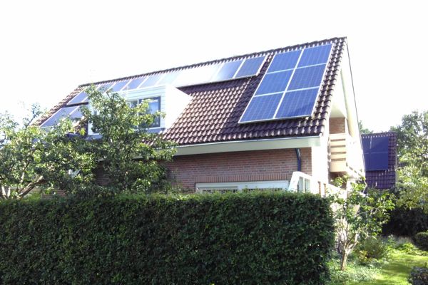 Vrijstaande woning met isolerend glas, zonnepanelen en warmtepomp.