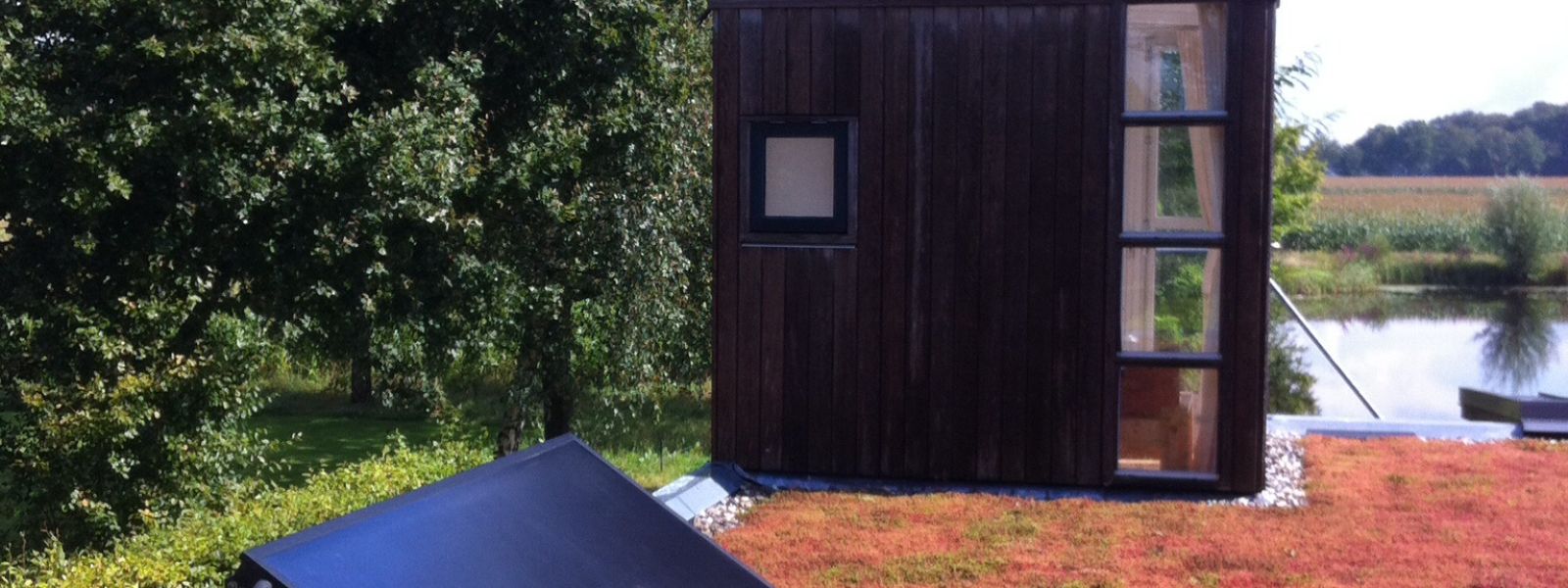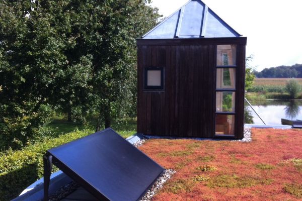 Alles gelijkvloers, zuidgericht, in 1987 al energiebesparende maatregelingen genomen, waaronder drie lagen glas en veel isolatie. Later zonnepanelen en zonneboiler aangebracht, schelpenlaag in kruipruimte, accumulerende kachel (hout). Sedumdak op de garage, later bijgebouwde bad- en slaapkamer vervaardigd met natuurlijke materialen, leemstuc en tadelakt.