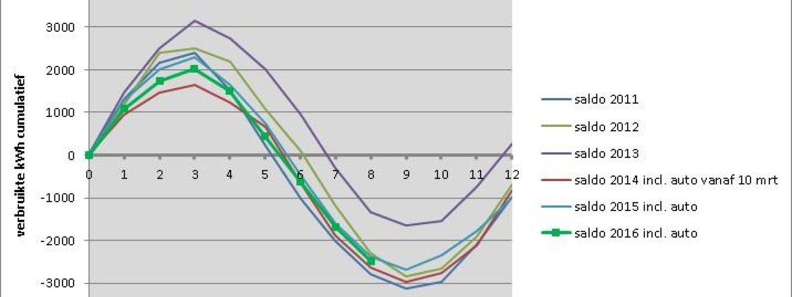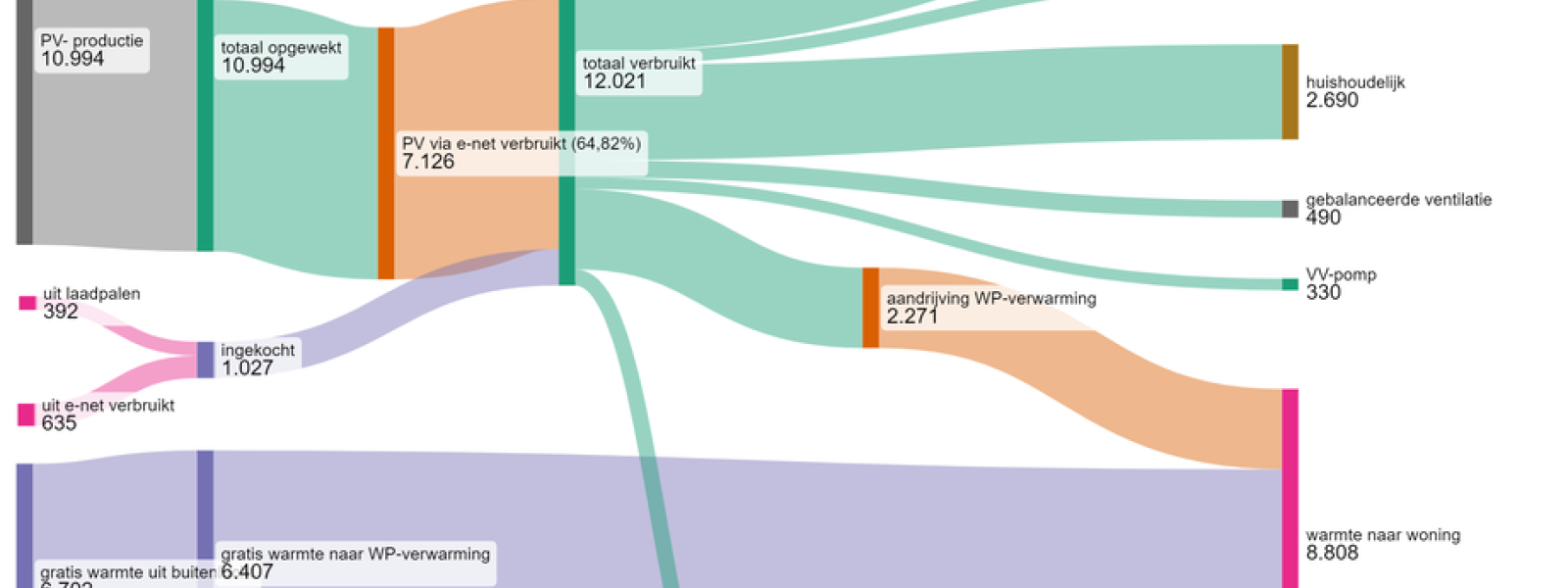 Wij hebben ons huis (bouwjaar 1987) omgebouwd tot energie plus woning. Dat betekent dus, dat het huis in een jaar meer energie produceert als het verbruikt. Een gasaansluiting hebben we niet meer en onze jaarlijkse energierekening is nul! En dat is inclusief het rijden in twee elektrische auto’s (samen ca 30.000 km/jaar) !!!!De laatste paar jaar was het verbruik zelfs al negatief. Ons huis heeft dus een negatieve EPC-waarde!Het huis staat in Ootmarsum.Hoe we dat gedaan hebben staat omschreven op onze website.De meeste dingen zijn (voor zover wettelijk toegestaan) zelf uitgevoerd en iedere handige doe het zelver moet dat kunnen (denk wel aan veiligheid bij werken op hoogte en met hoge elektrische (gelijk)spanningen).Er is in 2003 een PV installatie aangebracht (half oost/ half west) en in 2009 is een lucht / water warmtepomp geïnstalleerd. Later voorzien van extra isolatie, zonnepanelen en lucht/water warmtepompboiler. Vroeger alleen vloerverwarming op b.g. en in badkamer, nu ook op slaapkamers (op houten verdiepingvloer). Sinds maart 2014 ook elektrische auto en vanaf december 2016 een tweede.We houden jaarlijks nog een beetje elektriciteit over, terwijl we de opgewekte stroom gebruiken voor:Alle normale stroomverbuikers in een woningVerwarmingWarm tapwaterbereidingElektrisch koken (inductie)ca 30.000 km/jaar met de elektrische auto’sEn toch zijn er nog wel een aantal mogelijkheden voor verbetering….