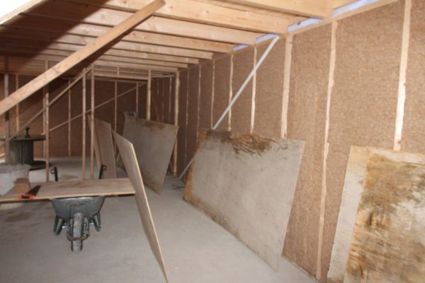 Alle buitenwanden nagisoleerd met platen Gutex 4 mm dik en 6 mm dik