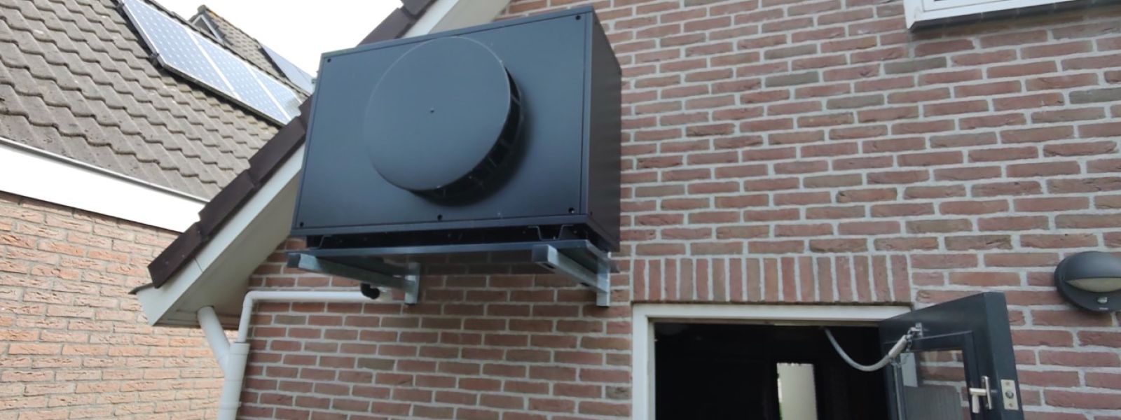 Warmtepomp met standaard radiatoren. Deze zijn voorzien van extra convectorventilatoren die de afgiftecapaciteit van de radiatoren verhogen.