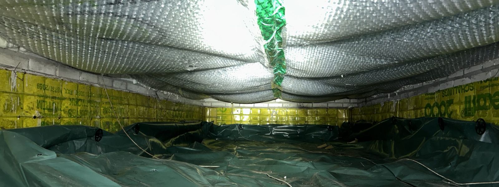 In de kruipruimte is dampfolie gelegd en is 80mm PIF bubbelfolie met 5cm spouw aangebracht. Bubbelfolie is minder schadegevoelig dan bijvoorbeeld tonzon en je kan er later eevoudig nog kabels en buizen doorheen steken.