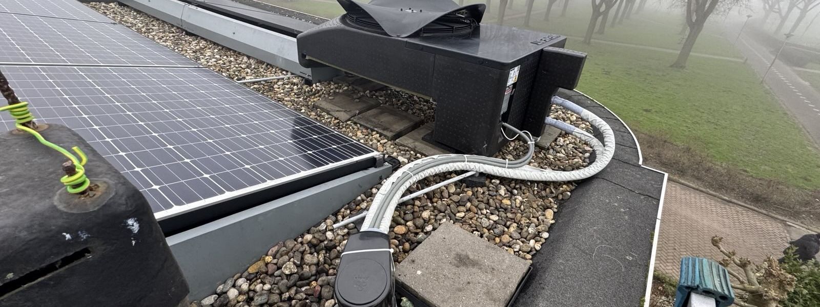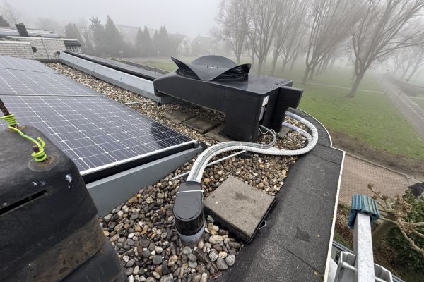 Sinds Jan 2025 volledig electrische warmtepomp van Weheat, Blackbird 8kW plat op het dak met 300 SWW vat.