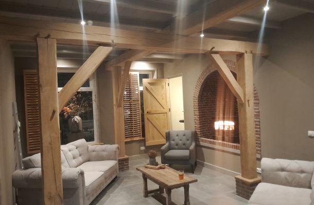 Onze woning is gelegen in de wijk ’t Hammerveld, die je kunt beschouwen als een klein, zéér autoluw dorpje aan de rand van de binnenstad van Roermond. In samenwerking met een architect is deze vrijstaande hoekwoning, op een perceel van 500^2m, tot stand gekomen. De aannemer zei altijd, ik bouw voor jou een woning zoals ze dat 100 jaar geleden ook al deden en hij bedoelde daarmee, dat hij voor ons een woning ging bouwen van uitzonderlijk hoge kwaliteit. En dat heeft hij naar volle tevredenheid gerealiseerd. Een ruime vrijstaande woning uitgevoerd in 3 bouwlagen. De buitenbladen van de bouw zijn uitgevoerd met stenen van het type “strengpers” en alle binnenwanden zijn opgemetseld met betonblokjes “kopse kant” 10x10cm. Kozijnen, ramen en deuren zijn van hardhout en de “begane grond” vloer, 1e verdieping en 2e verdieping zijn betonnen dekvloeren. Alleen de draagbalken op de zolder zijn van vuren hout.