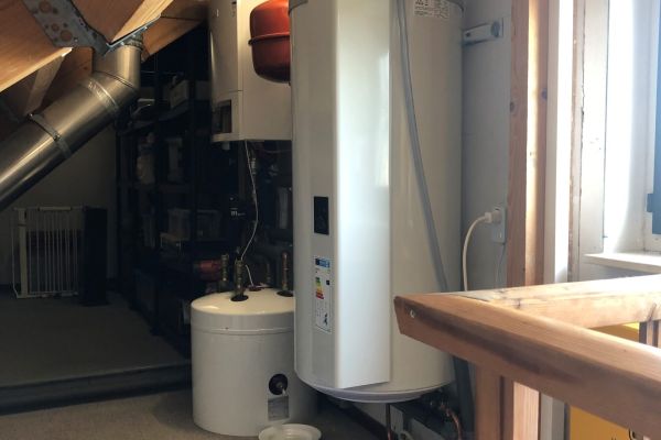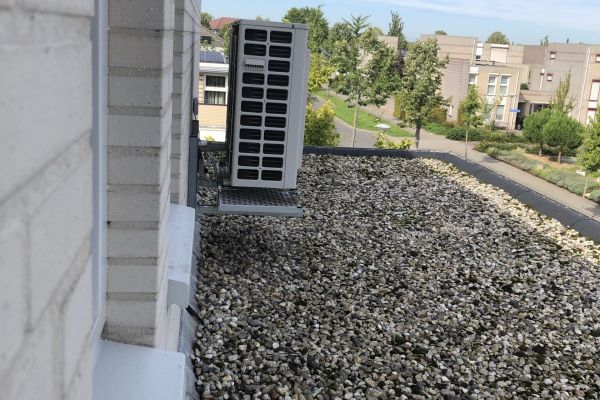 Warmtepomp en 30 zonnepanelen incl. thuisbatterij van HomeWizard (4 units). Warmwatervoorziening d.m.v. een warmtepompboiler. Zowel beneden als boven bevindt zich een airco-unit, die kan koelen en verwarmen.