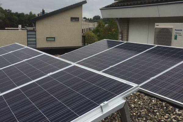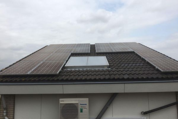 Ons vrijstaande woning met 2/3 woonlagen en bouwjaar 1998 is oorspronkelijk geleverd met met CV ketel en mechanische lucht afzuiging. Dak afmetingen 7 x 7 m met helling van 20 graden en plat dak van 6.3 x 6,3 m.Direct na de oplevering is vloerverwarming en een zoneboiler geïnstalleerd. In nov. 2012 zijn 18 zonnepanelen op het schuine dak geplaatst van 250 Wp/stuk.In juni 2017 is de CV ketel verwijderd en is een Warmte Pomp met boiler enz. geplaatst. De warmte van de zonneboiler staat in serie met het warm watersysteem van de Warmte Pomp.In juli 2017 zijn extra 8 zonnepanelen van 265 Wp/stuk op het platte dak geplaatst om de 1100 m³ gas van vervallen CV ketel te compenseren.Wij hebben door het goede zonnejaar ca. 400kW over. Bij een slechter jaar zullen wij nog steeds nul op de meter hebben.
