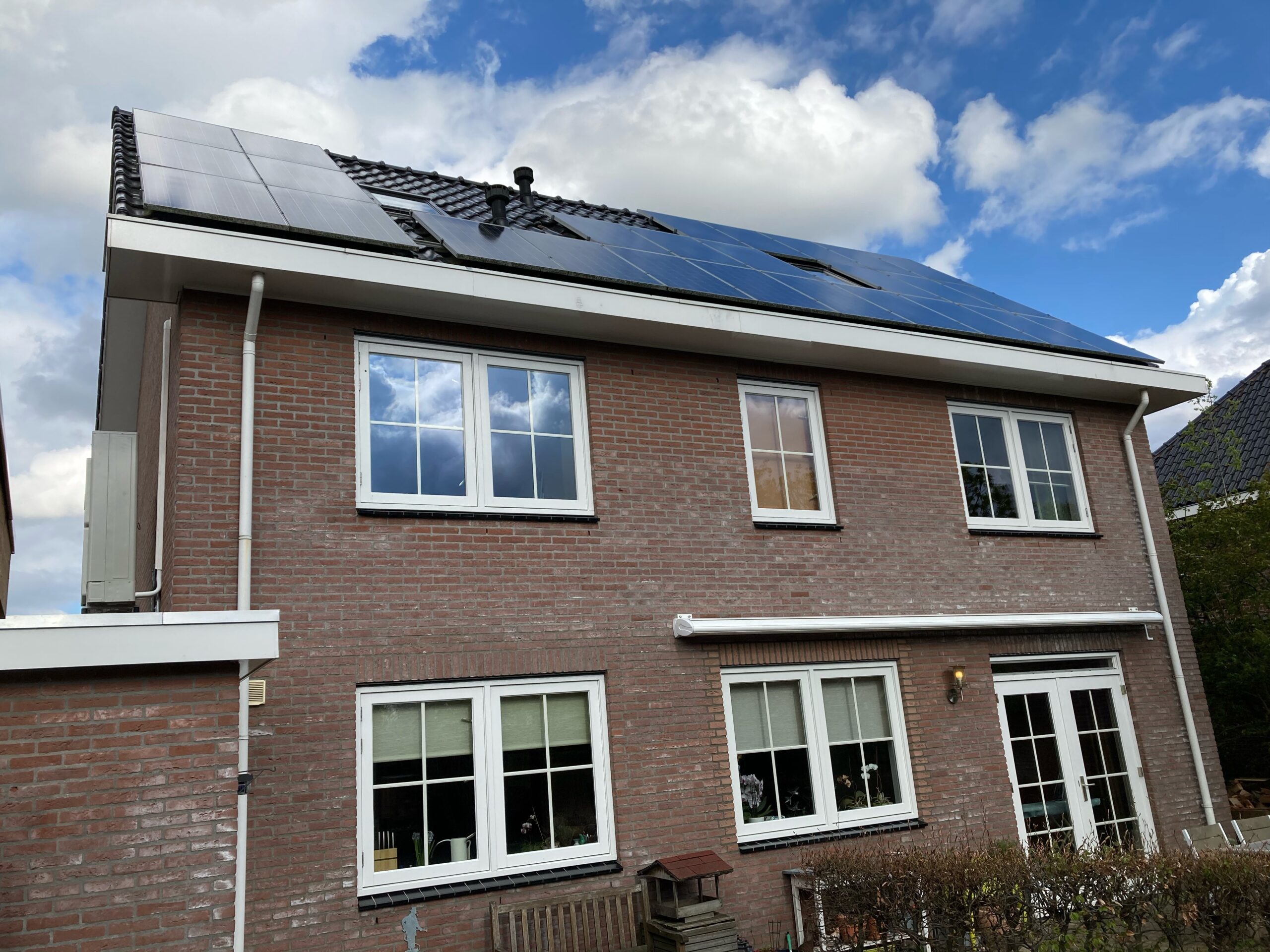 2 PV-installaties van totaal ca. 9800 Wp. De gasmeter is verwijderd. Een batterijopslag van 15 kWh met eilandbedrijf.