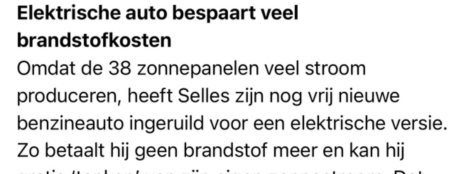 == ==Update 01-2022=  Vroeger was ons verbruik: 4.000 kWh stroom en 1.800 m3 gas. En de benzine (22.000 km/jr) 1.850 liter.Het energieverbruik in 2021 met de elektrische auto over het volledige jaar meegerekend: 4.150 (huis) + 3.900 (warmtepomp) + 4.450 (auto) = 12.500 kWh totaal / De opwek was ong. 12.300 kWh, dus we hebben zo’n 200 kWh tekort. 2021 was een matig jaar voor de zonnepanelen, maar we zijn blij verrast dat we toch zo mooi uitkomen. Wat zijn de besparingen? Als we de 4.000 kWh stroom én 1.800 m3 gas én 1.850 ltr Euro95 even omzetten naar €€€ dan schrik je.. € 8.000,- op jaarbasis (prijspeil jan.2022). In 5 jaar hebben we zo de investeringen in de woning en toebetaling op de elektrische auto eruit!