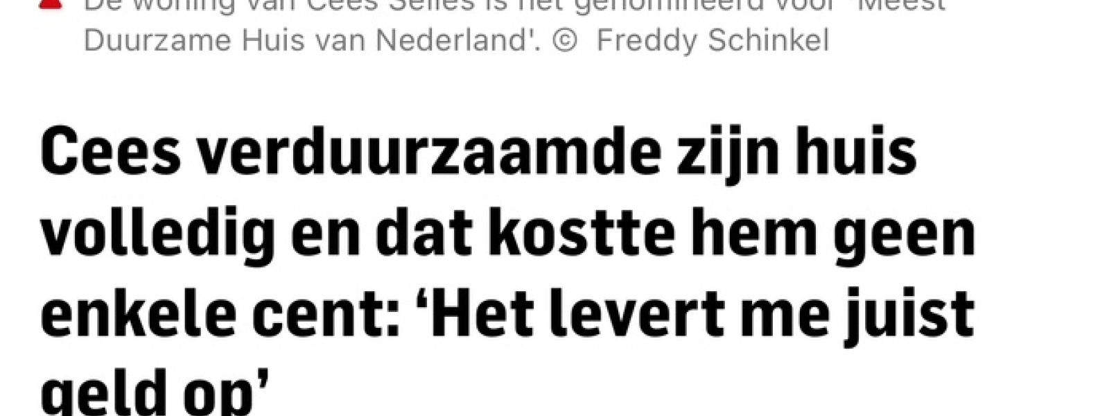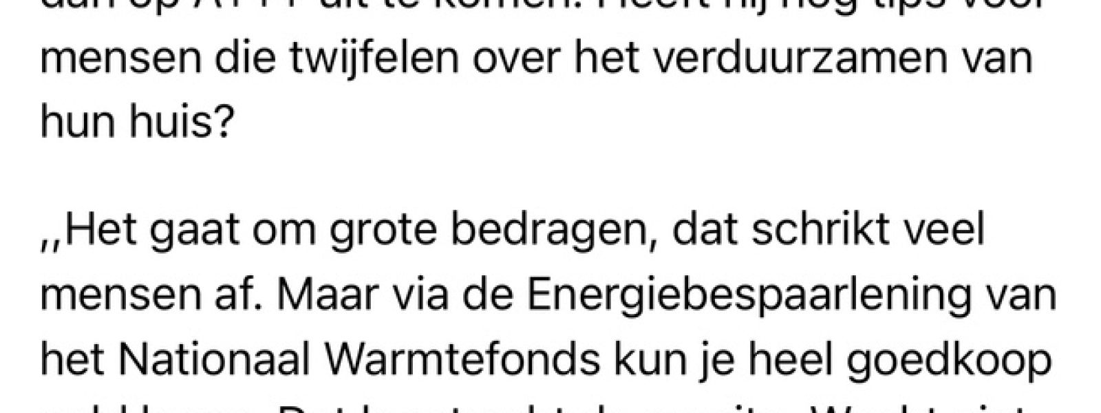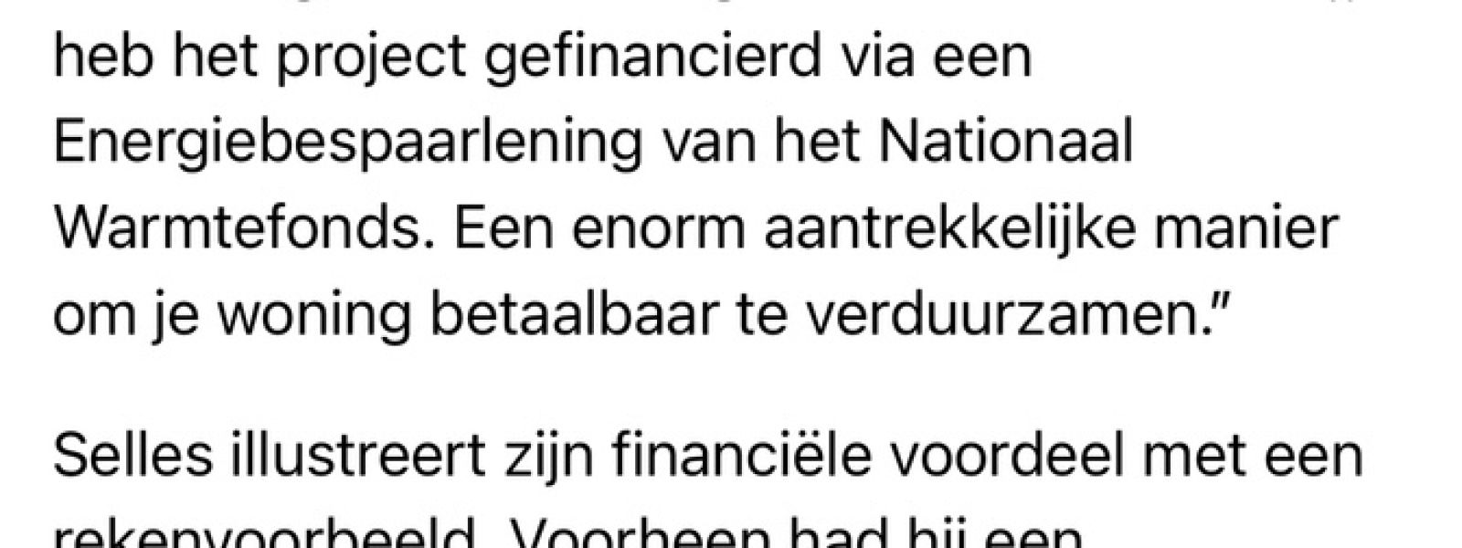 In februari 2024 haalden we alle nationale en regionale kranten van het AD over het verduurzamen van ons huis zonder eigen geld m.b.v. de Energiebespaarlening van het Warmtefonds. Zie de laatste 6 foto’s.