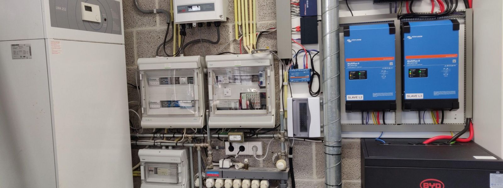 Volledig automatische woning met comfort en energiezuinig als uitgaanspunten. 27 zonnepanelen vullen overdag een 10kwh accu, de surplus van de zon wordt automatisme naar 1 van 2 volledige elektrische auto’s gestuurd. In de avond ontlaadt de accu tot ongeveer 2uur ’s nachts totdat de accu leeg is.