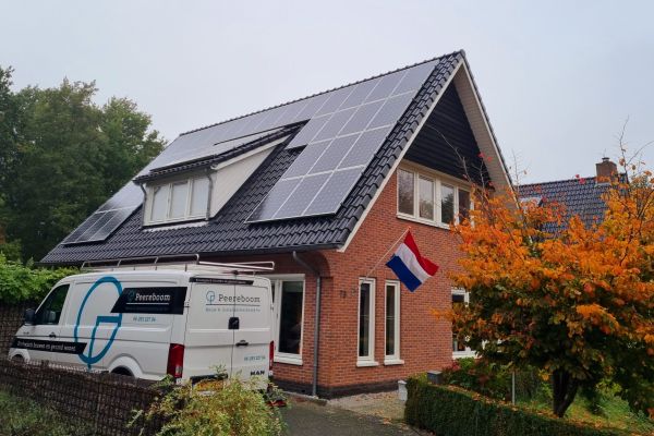 Woning voorzien van milieu vriendelijke vlas-isolatie, 39 zonnepanelen, zonnecollector en een warmtepomp met gesloten bronnen.