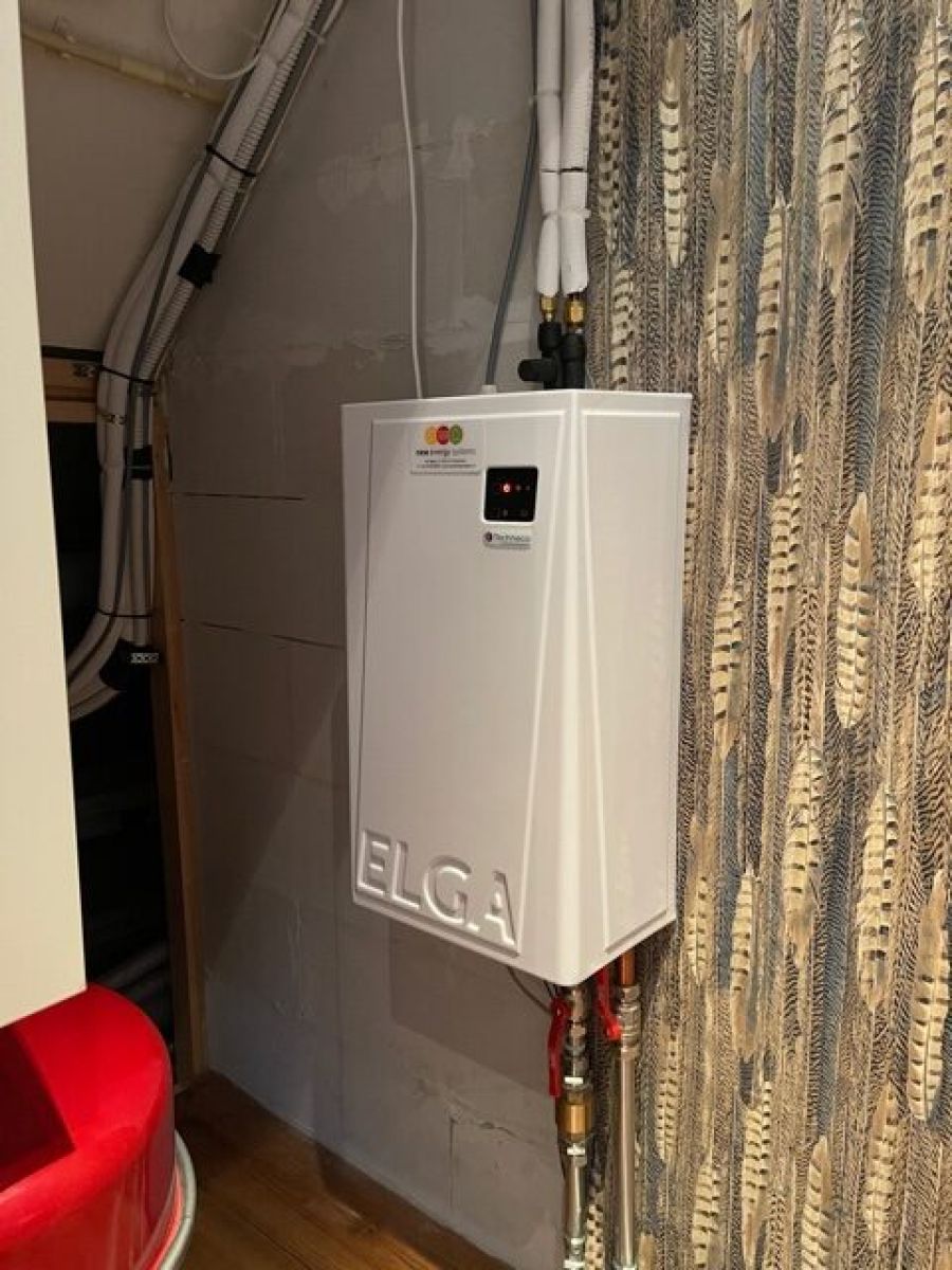 – Techneco Elga lucht/water warmtepomp met een verwarmingsvermogen van 5 kWth (binnenunit).