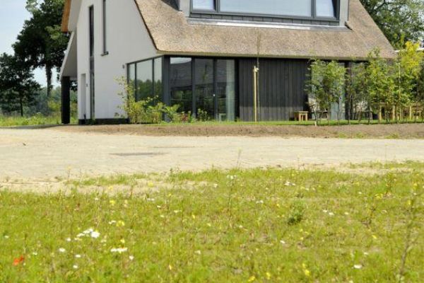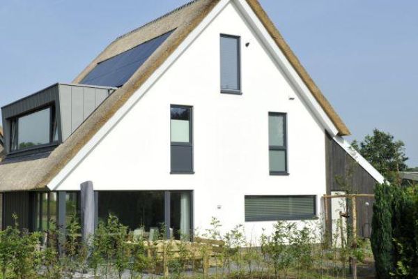 Overschraging dakzijde aan zuiden van woning geeft natuurlijke schaduw