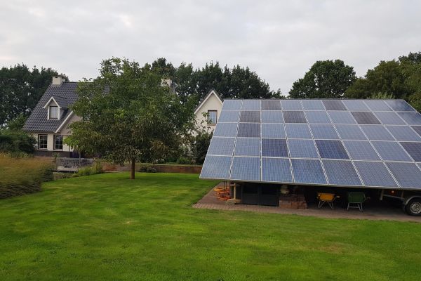 45 zonnepanelen leveren de energie en in combinatie met een Tesla powerwall wordt zoveel mogelijk zelf opgwekte energie gebruikt