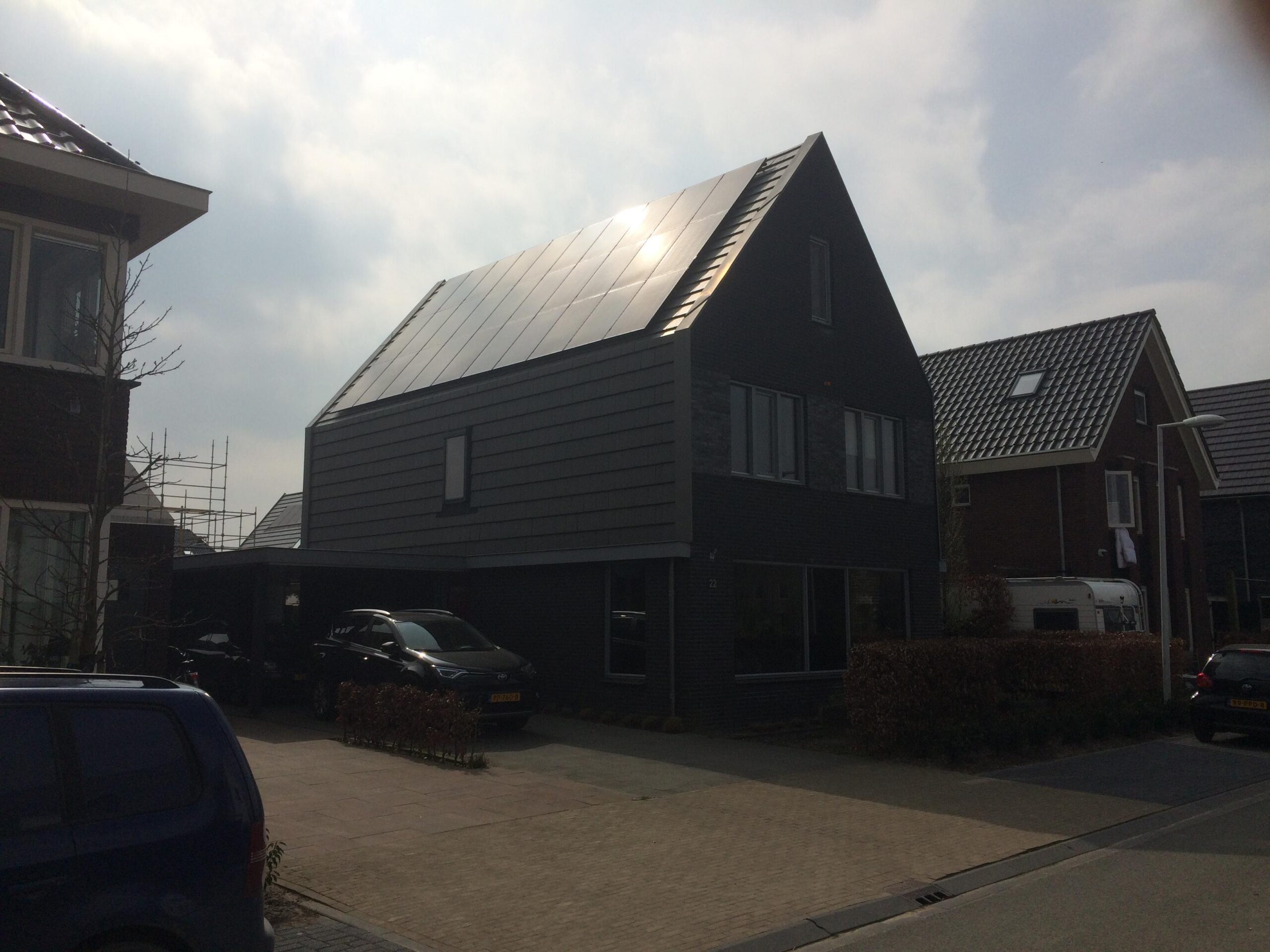 Zonnepanelen op de westkant om productie op verschillende momenten op de dag te hebben.