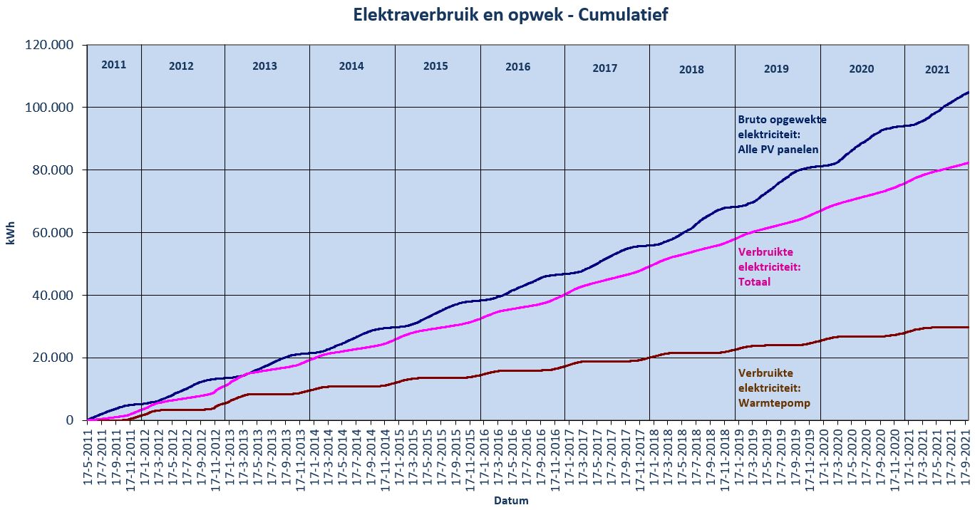 Ruim 14 jaar energieneutraal o.b.v. een installatie met PV panelen, zonneboiler met 2.000L buffer, en een warmtepomp met bodembron;