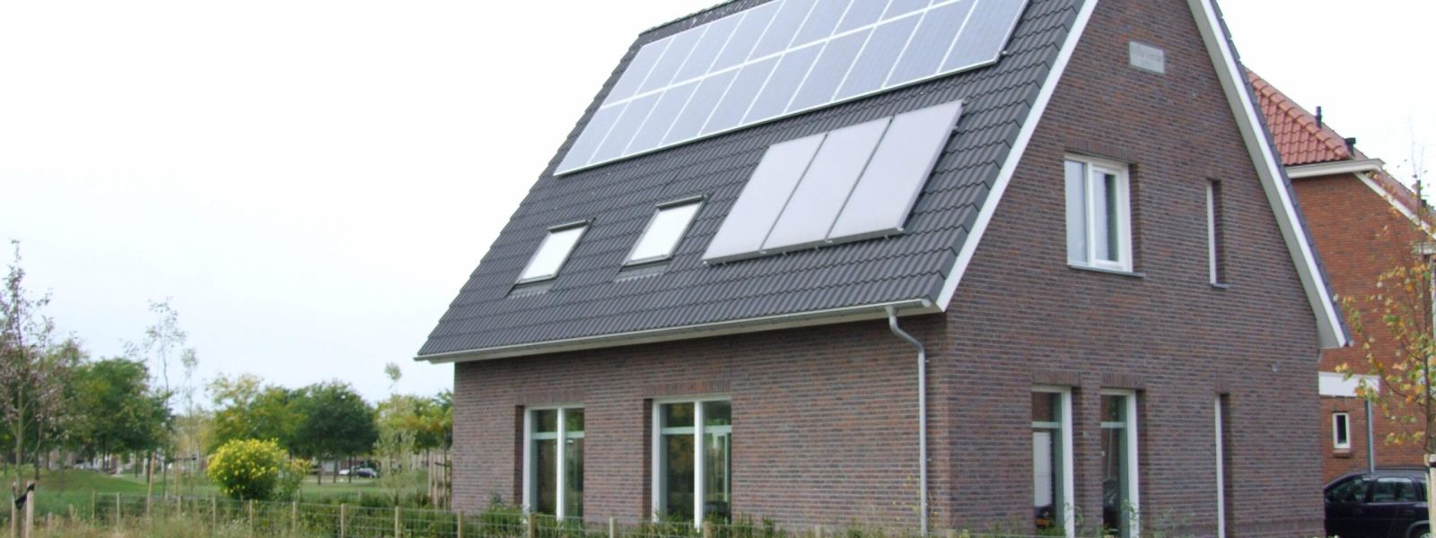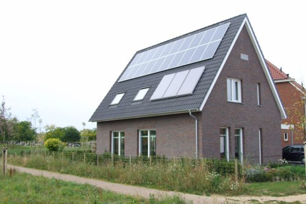 Passiefhuis met drievoudig glas, zonneboiler en zonnepanelen