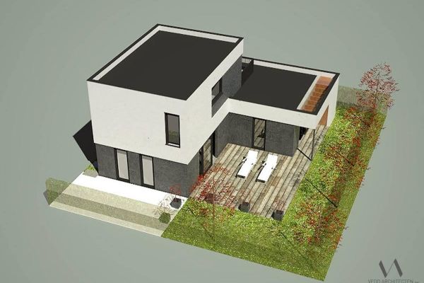 Houtskeletbouw woning met o.a. dak-, wand- spouw- en vloerisolatie, drievoudig glas en zonnepalen