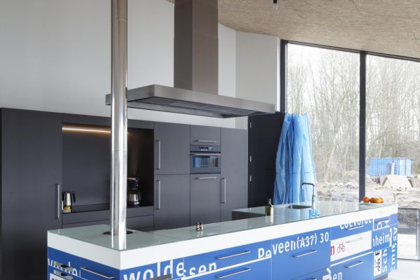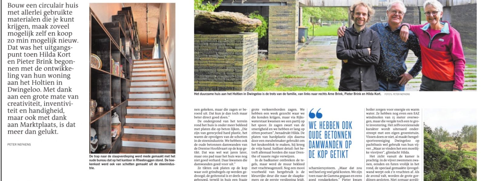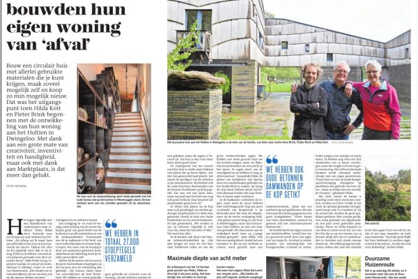 Zeer duurzaam, bijna zelfvoorzienend woonhuis. Veel zonnepanelen, zonnecollectoren, warmtepomp en 1.000 liter buffervat, CV haard, kookfornuis op hout voor de winters. Eigen waterbron en zuiveringsinstallatie, helofytenfilter voor het afvalwater. Het woonhuis is alleen aangesloten op het elektriciteitsnet en de glasvezelkabel, verder volledig off-grid. Het exterieur is op enkele onderdelen als glas en kozijnen na volledig opgetrokken uit hergebruikte materialen als steenschotten en oude trottoirtegels. Ook in het interieur zeer veel hergebruikte materialen (dekzeil vrachtwagens in plaats van wandtegels, verkeersborden voor de keuken, parachutes als gordijnen, enz.) waardoor het woonhuis een zeer lage CO2 footprint heeft.