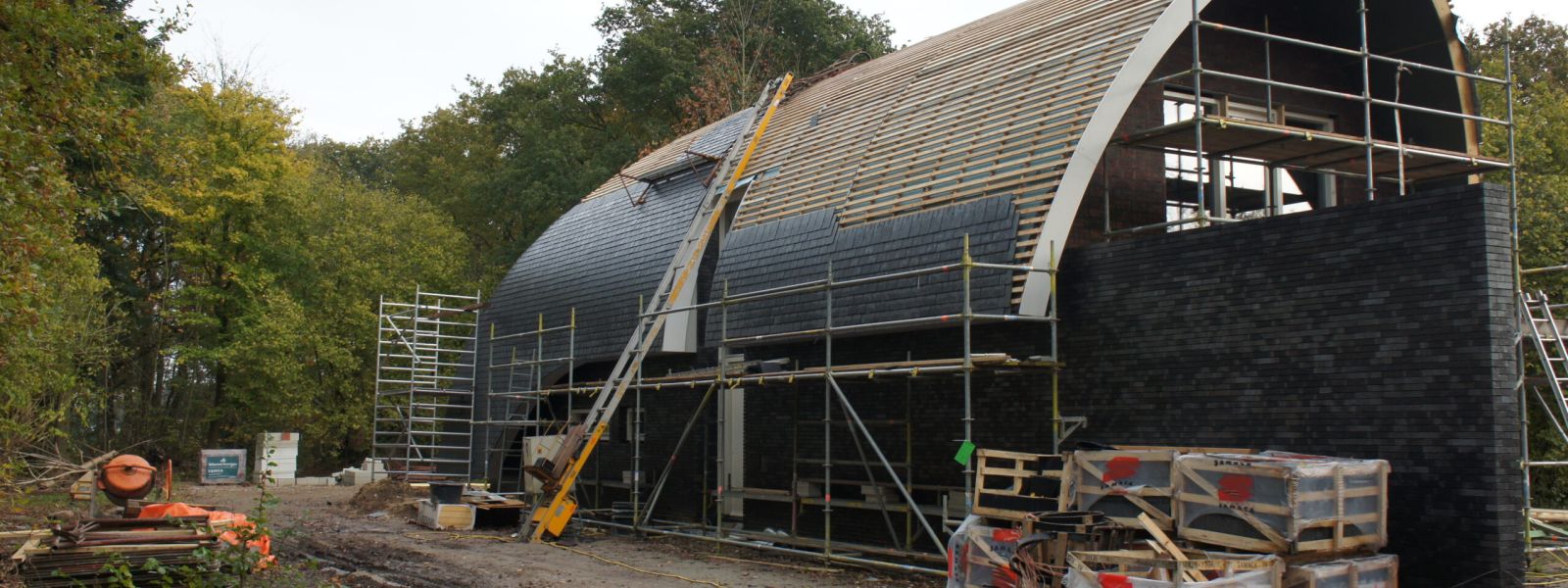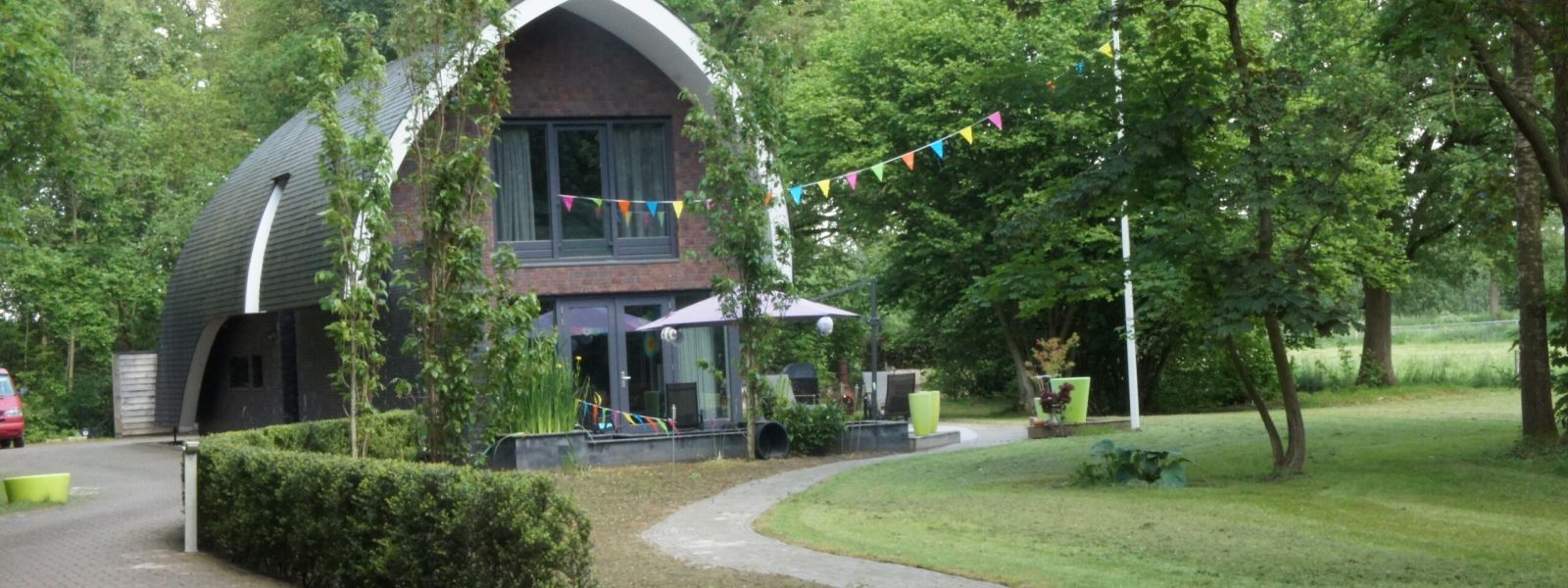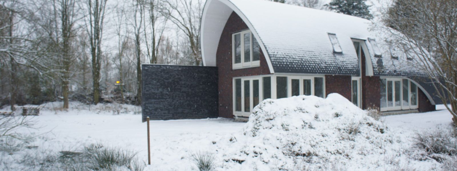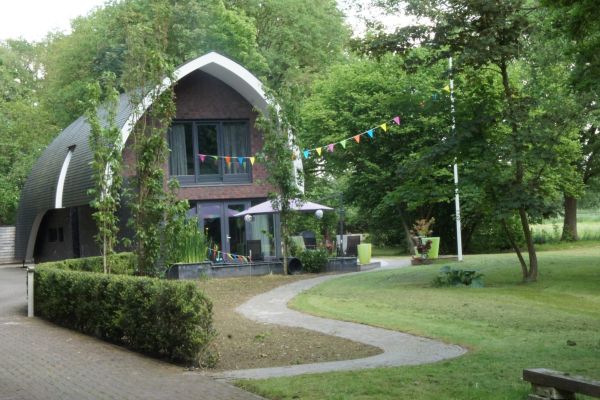 Net buiten de bebouwde kom, aan de rand van Haren. Verscholen achter een klein bos stond een vervallen boerderijtje, deze is gesloopt en op die plek is in 2012 deze woning gebouwd.