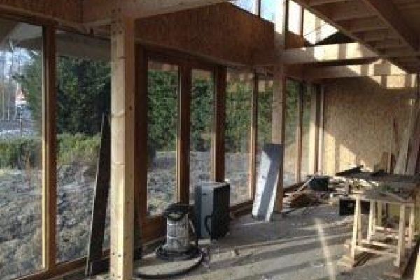 Eigenlijk hebben we op het prefab casco en het hijen van de funderingspalen alles zelf gedaan. De fabrikant van het casco (Bouwderij) heeft het casco ook neergezet, wij en mijn (Quintin) vader hebben hierbij geholpen.