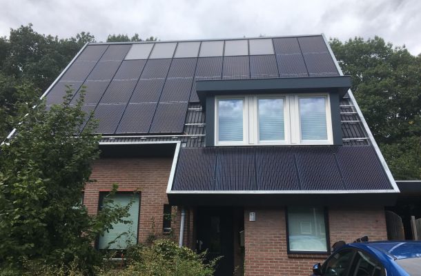 25 m2 zonnepanelen, goed voor 3800 Wattpiek. Ieder paneel heeft een eigen omvormer.