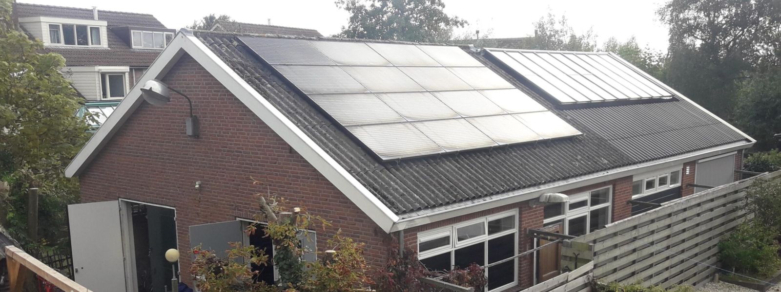Woning is een voormalige werkplaats. Lichtstraat in het dak. 32 zonnepanelen. Geen gas. Warmtepomp. Pelletkachel.