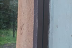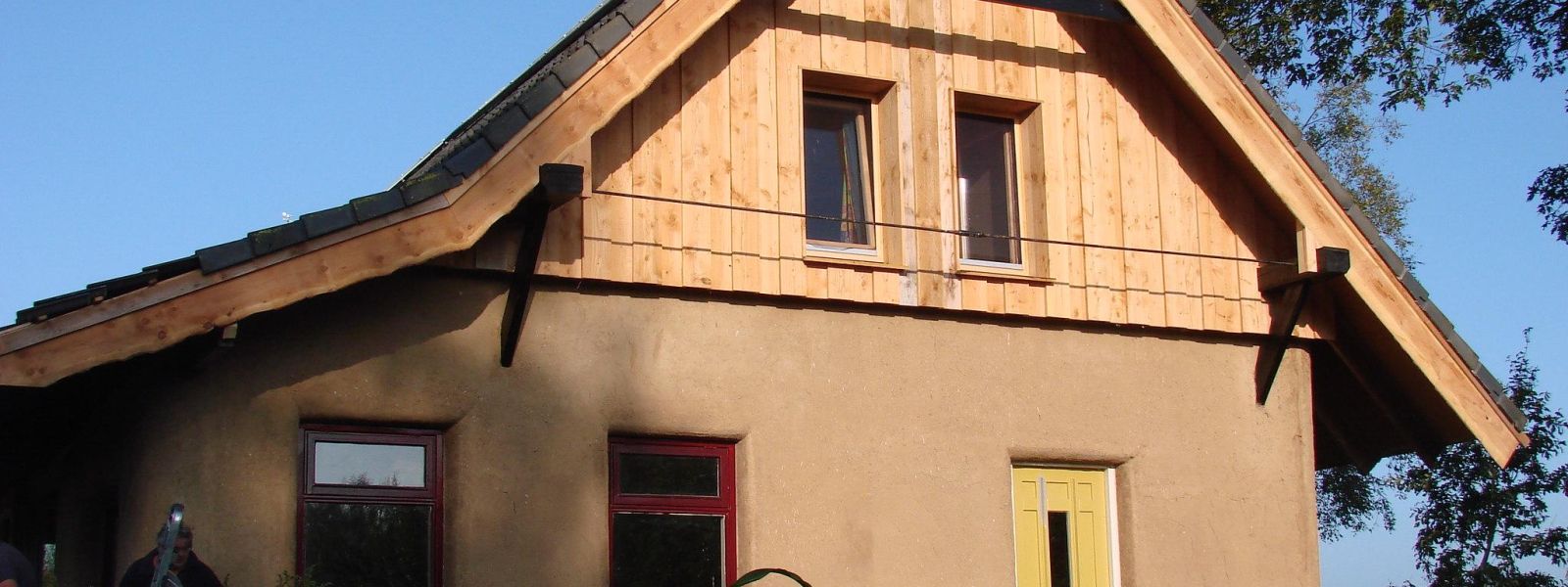 Gevelisolatie in 2011. Toelichting: Strobalen en homatherm celluloseplaat 35 en 22 mm.