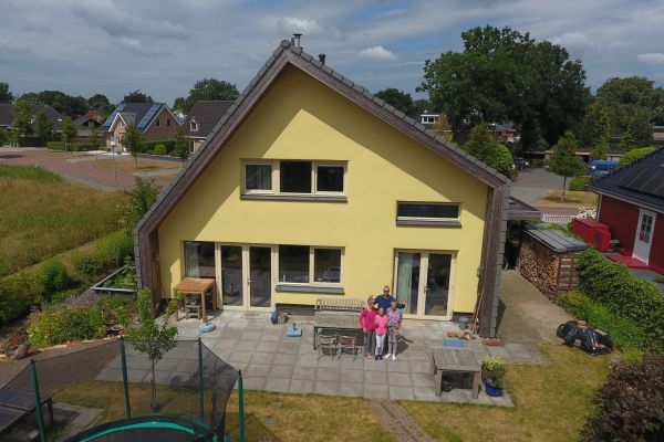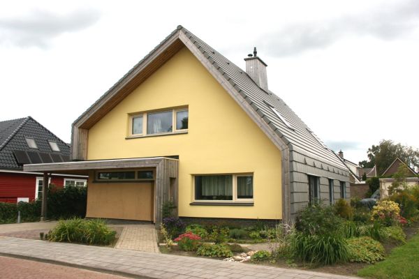 We hebben gebouwd met natuurlijke materialen zoals stro, leem, hout en houtvezel. Met de indeling van de woning is rekening gehouden met de zon. Er is veel glas op het zuiden en westen en minder glas aan de noord- en oostkant. Binnen is massa aangebracht middels leemstuc, porisostenen en een massakachel. Hierdoor blijft de temperatuur stabiel en kan warmte of verkoeling worden vastgehouden. Er is veel aandacht besteed aan de luchtdichting van aansluitingen en overgangen. Er zijn geen folies toegepast. De gevels en dak zijn dampopen zonder spouw.