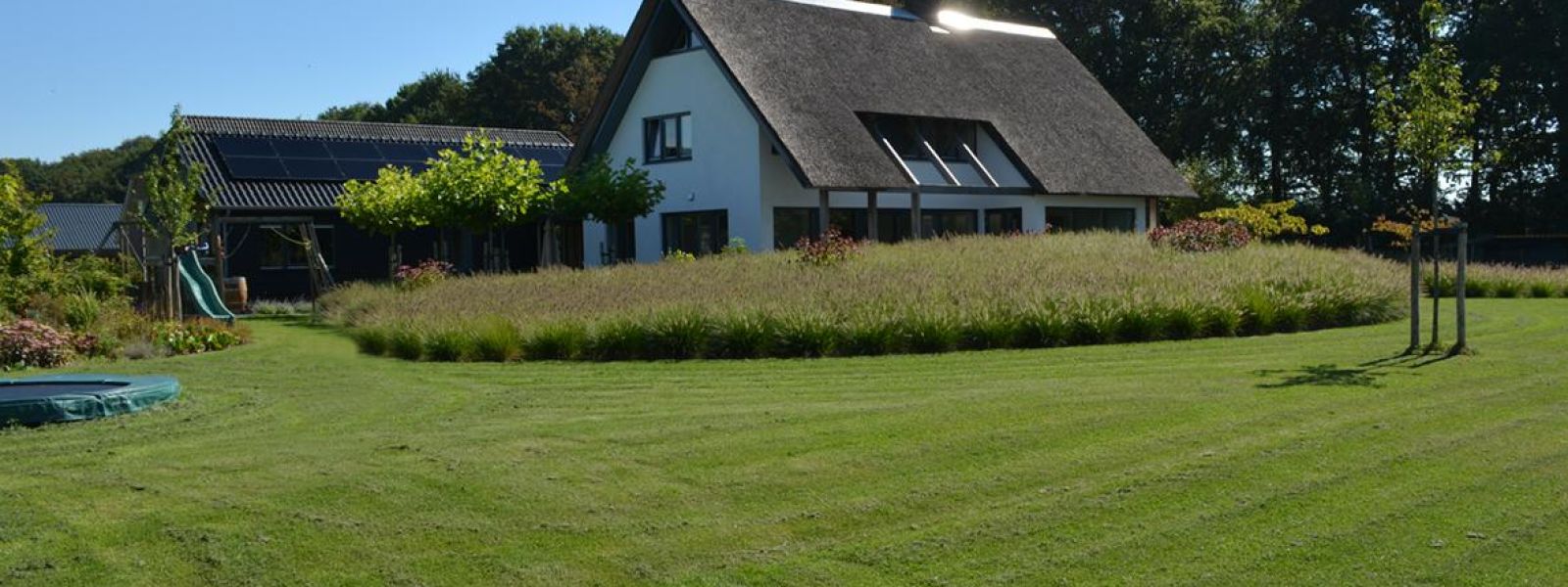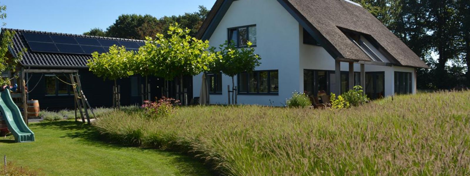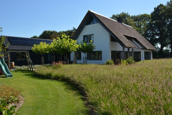 Moderne, landelijk gelegen, gasloze woning (2013) met bedrijfsruimte in het bijgebouw. Met verwarming en koeling middels WKO, 16 zonnepanelen, HR++/seizoensglas, uitgevoerd met domotica en laadpaal.
