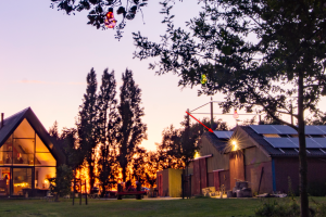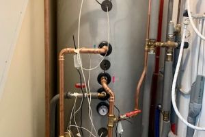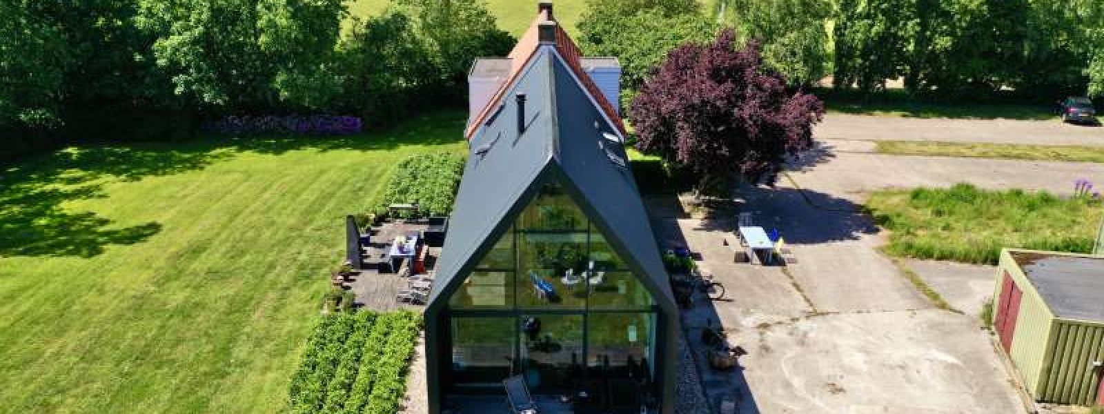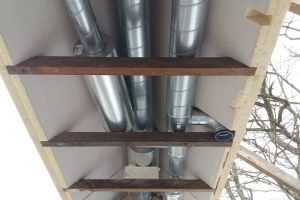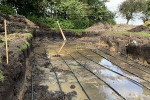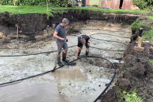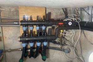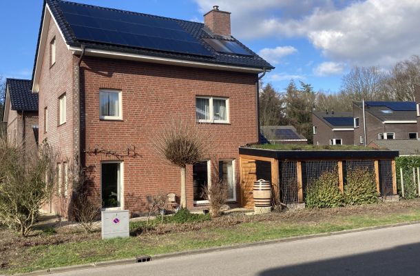 Ventilatie warmtepomp (spaarpomp) aangesloten op de ventilatiekanalen van het nieuwe huis en deels het oude huis. Bodemwaterpomp via horizontale slangen. Deze zijn op 1,5 m diep ingegraven en verspreid over 600 m2. 4 groepen/slangen van 32 mm van 110 m lang ingegraven.. Kan hierdoor ook passief koelen door koud bronwater door de vloer te sturen. 17 kWp zonnepanelen, warmte terugwinning douchewater. We hebben meer dan 2 km bomenwal om ons kavel. Jaarlijks veel snoeihout. Daarom ook gekozen voor een hout-gestookte kachel en aangesloten op de warmtebuffer. Dus verwarmen we deels ons huis en douchen we met ons eigen hout.